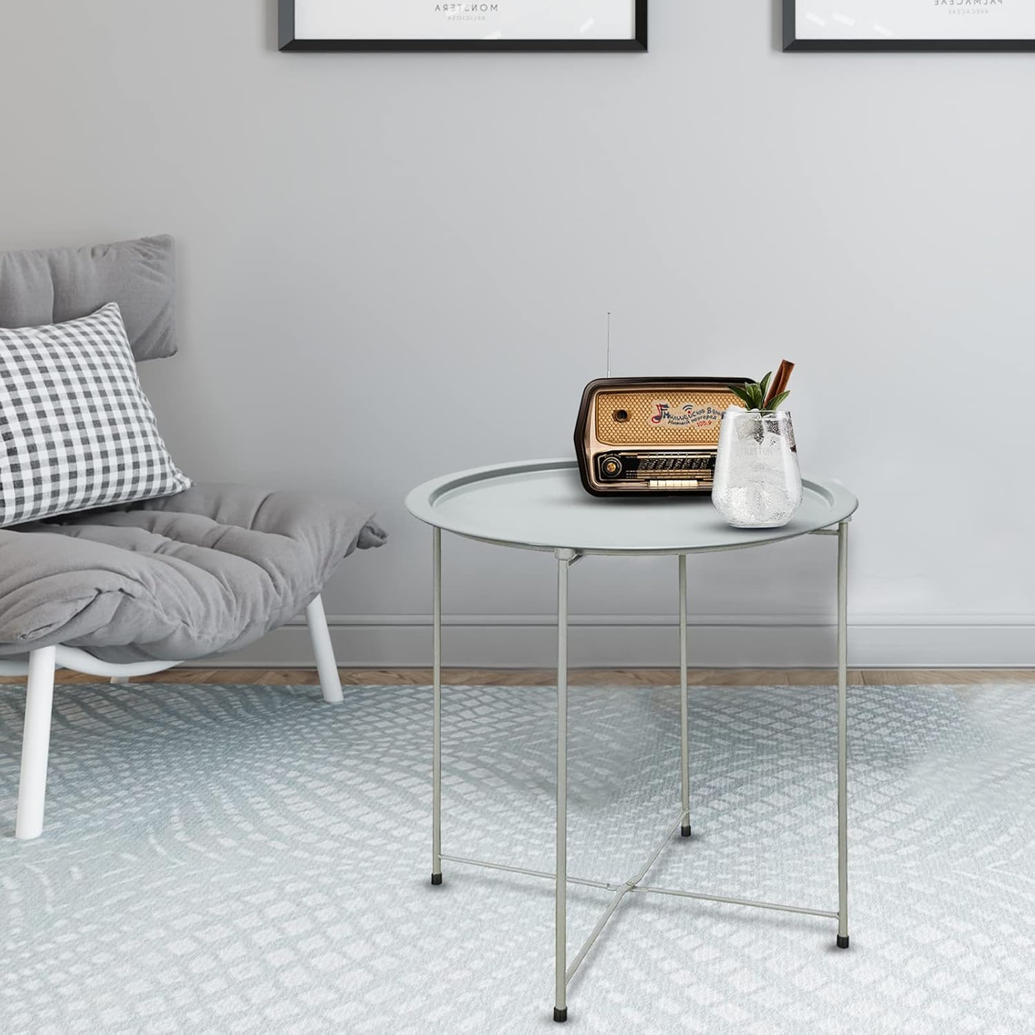 Garden 4 you End Table Outdoor Side Table, Small Patio Table Metal Side Table, Round Folding Side Table, for Outdoor and Living Room,Blue