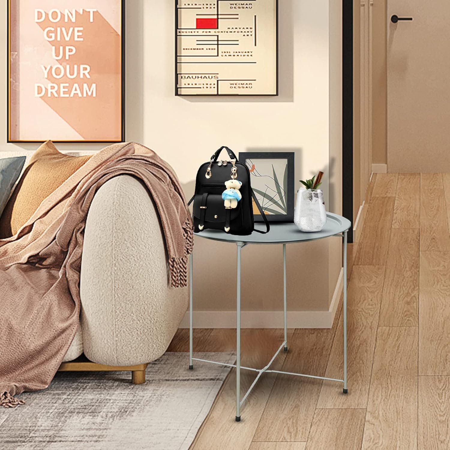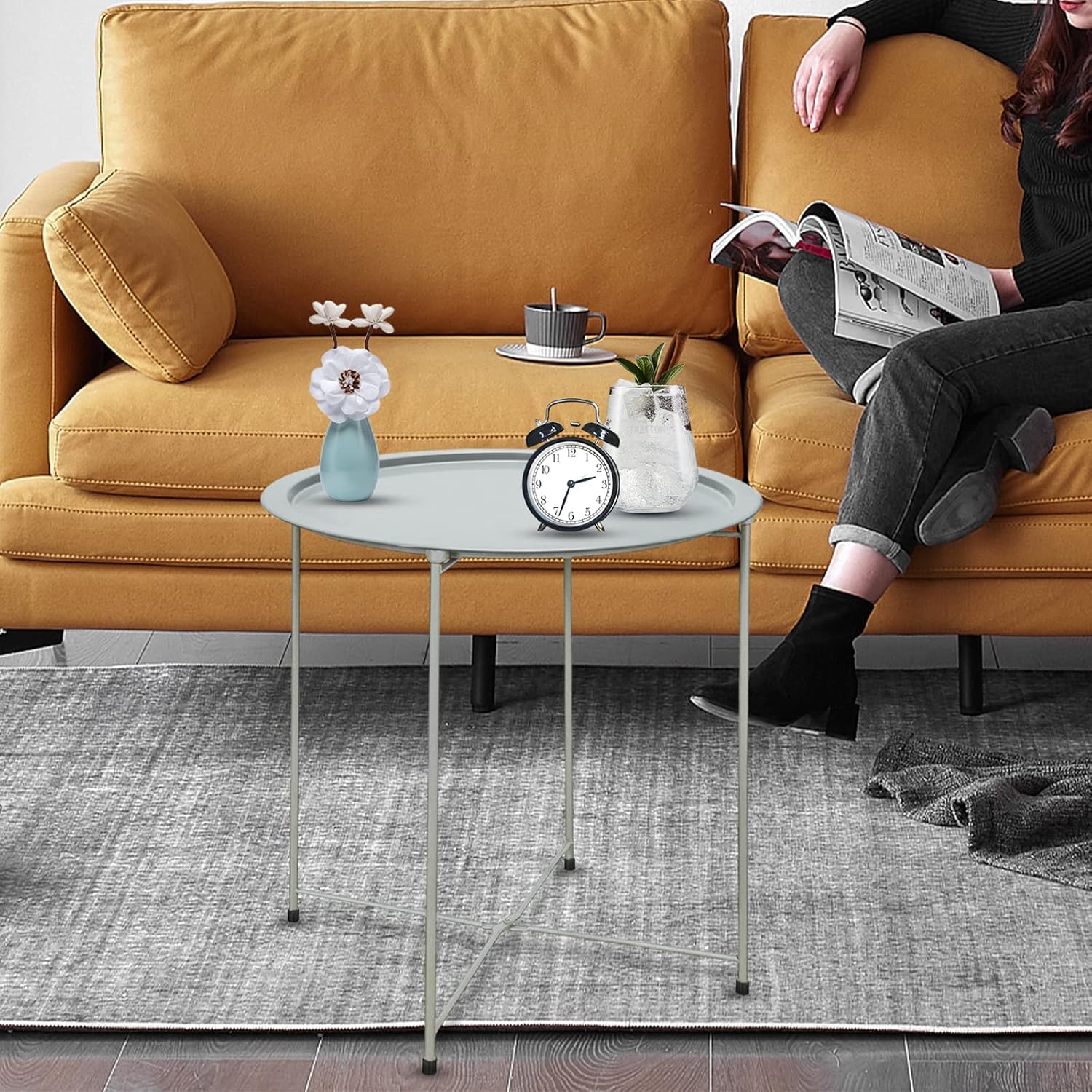 • ✔ FOLDING EASY & PORTABLE: With a convenient designed, the end table can easy to Folding up and down quickly, When the table was folded, it takes up small space . Removable and portable, it is a temporary or picnic table when you need.You can fold or unfold it in a few seconds without any assembly.