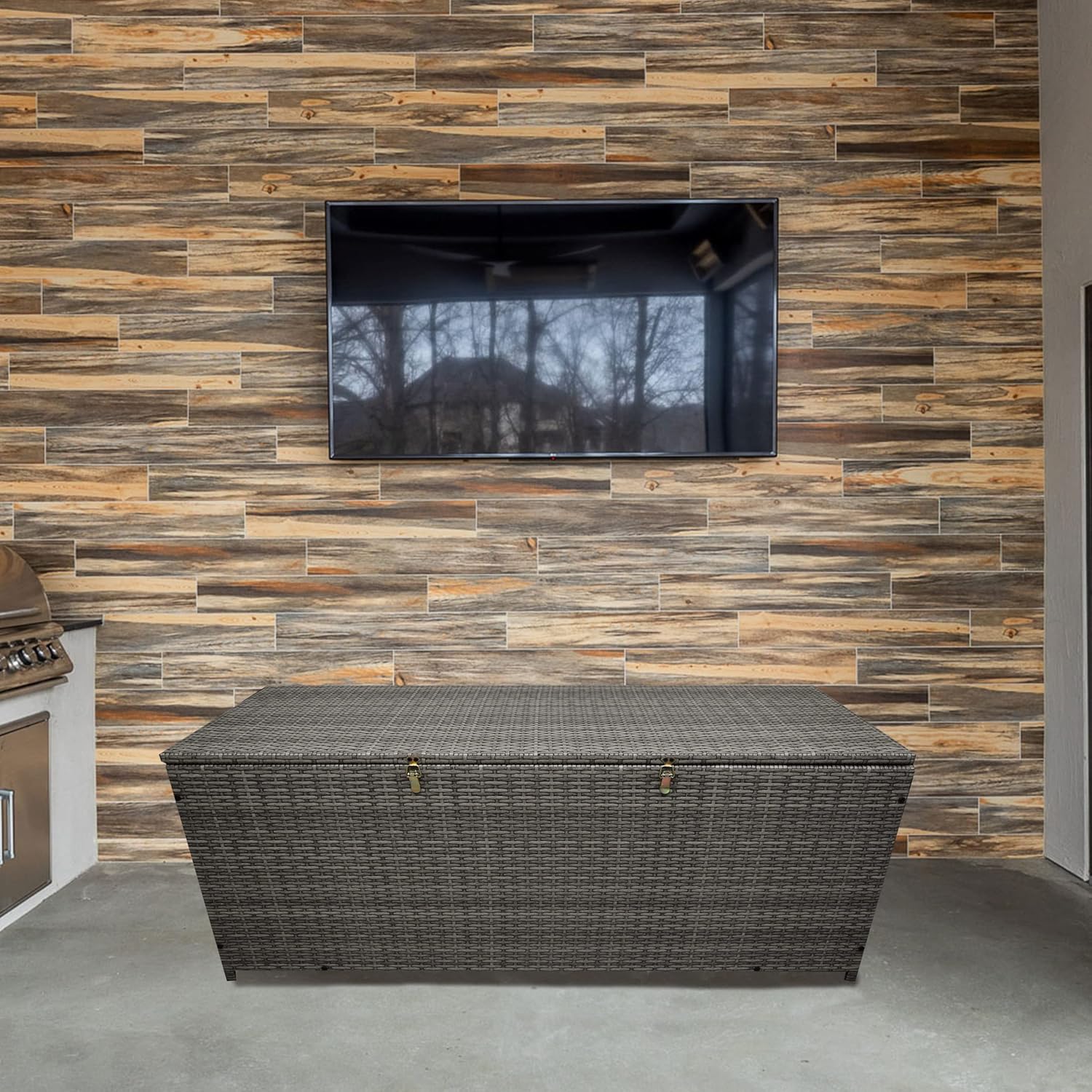 Oakland Living Grey Indoor and Outdoor Balcony Patio Deck Porch Pool 113 Gallon Wicker Storage Box Trunk Bin with Metal Frame
