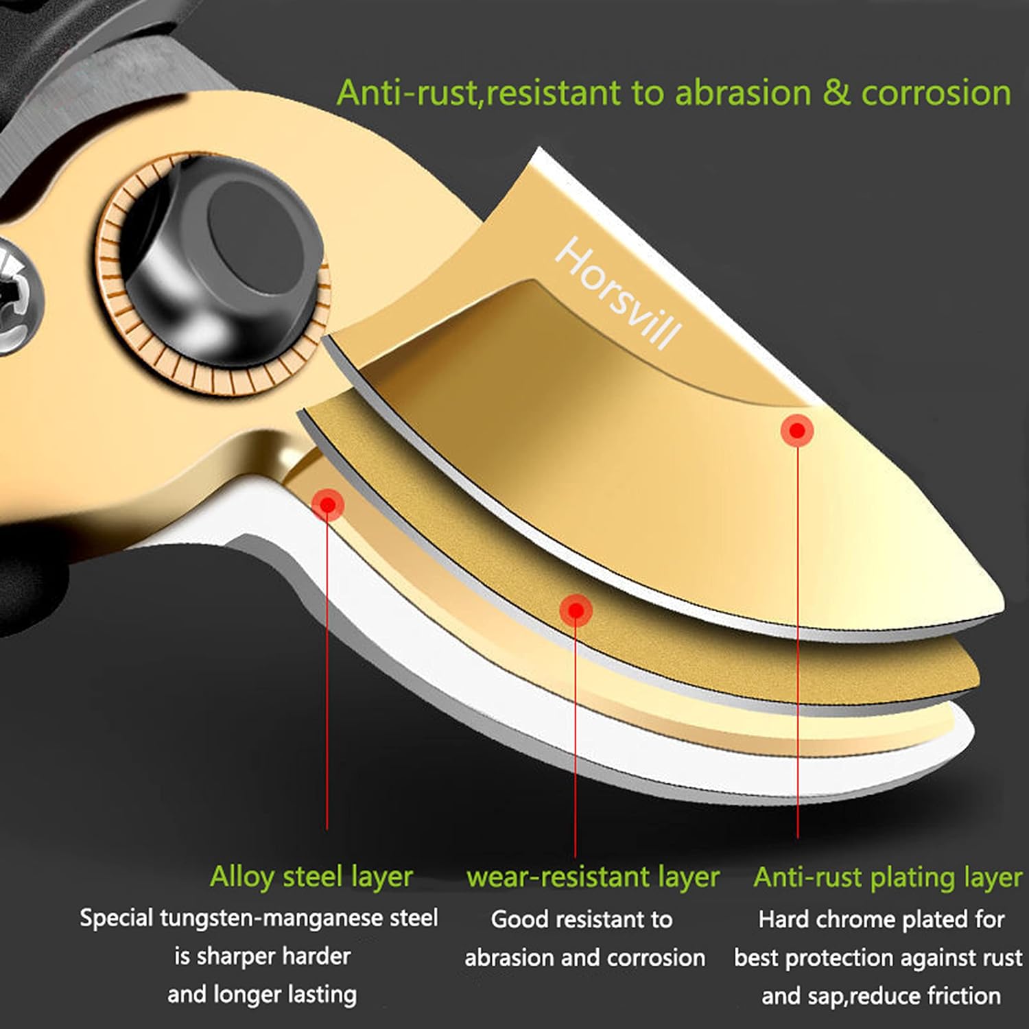 • SPECIAL PROCESS: The blade is quenched and hardened at high temperature,hardness reaches above HRC62, can cut branches up to 1 inch diameter. The blade is hard chrome plated for the best protection against rust and sap, reduce friction, increase smoothness, and extend service life.