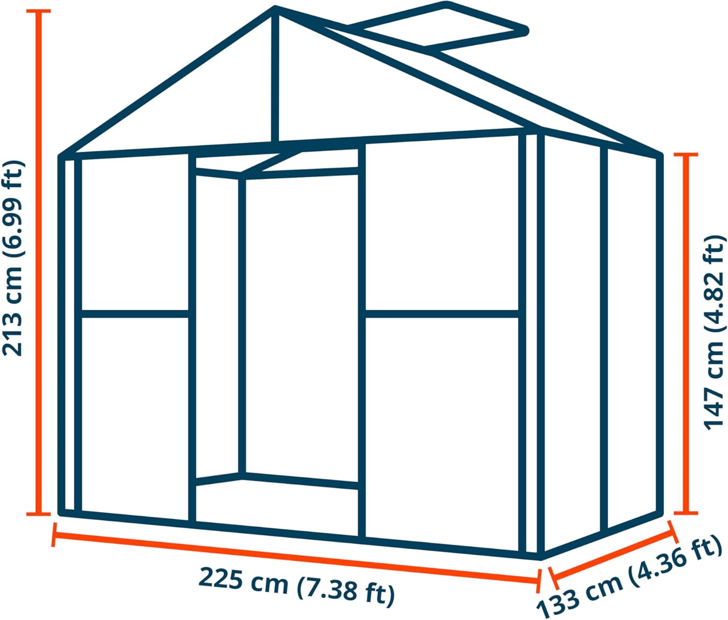 • SPACIOUS DESIGN: 7 ft peak height (4.8 ft side height) provides ample room for plants to thrive. The double sliding door (42.5 x 67.7 in) glides smoothly on top track rollers for effortless operation.