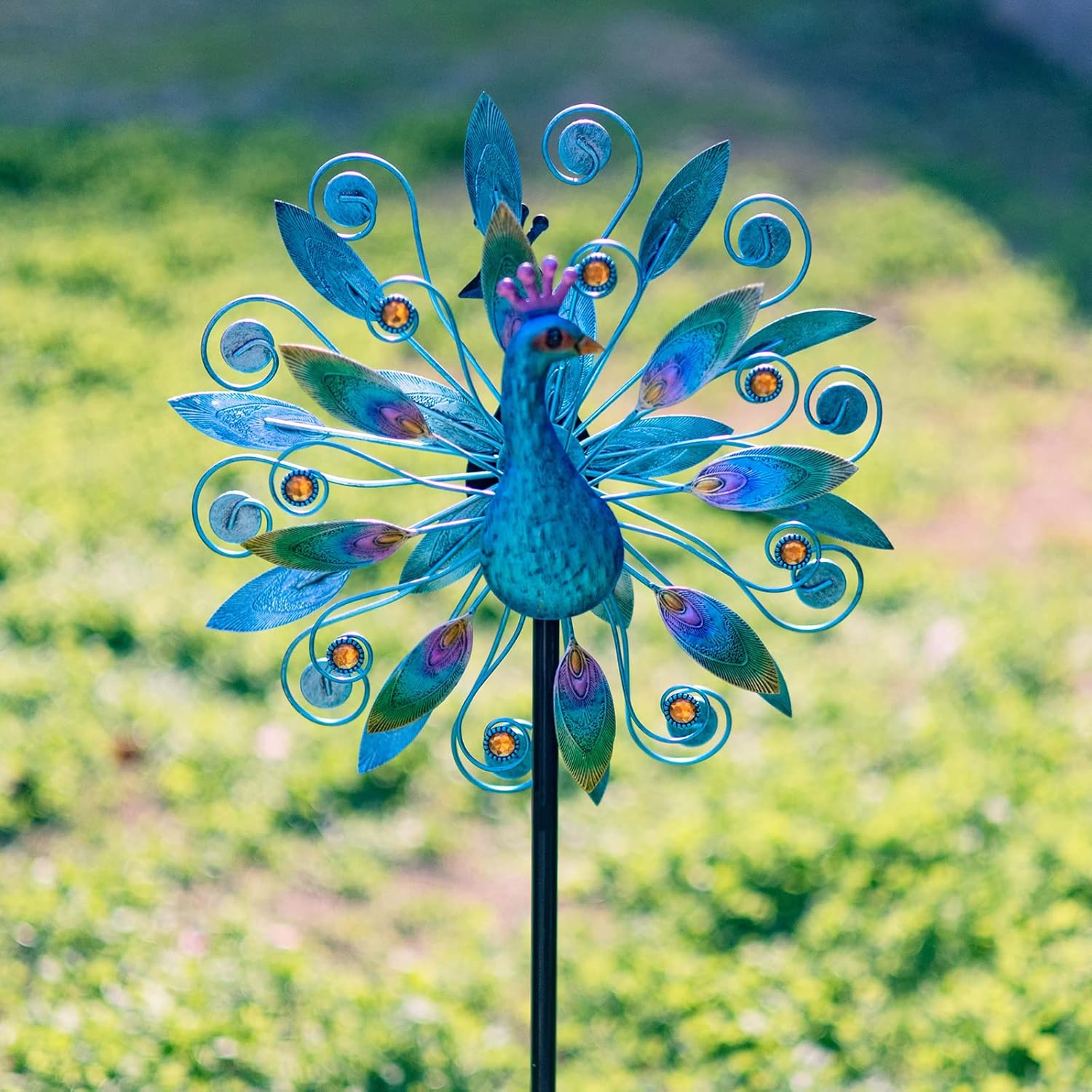 • Available Occasion:The peacock wind spinner is suitable for outdoor decoration such as yard, patio, lawn ,pathway etc. The peacock decor is also great for your family or friends as a gardening present