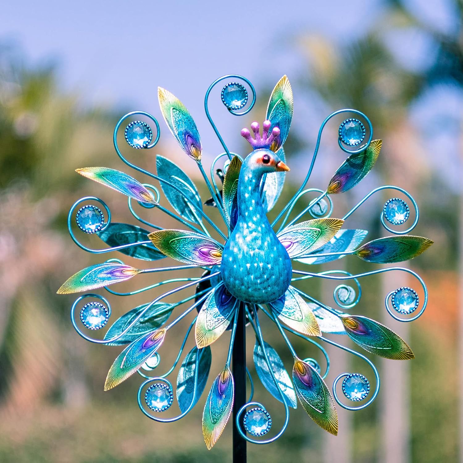 • Peacock Design:Design with vivid peacock, when there is a breeze, it can drive the tail to rotate, adding color to your garden, terrace or lawn and relax your mood
