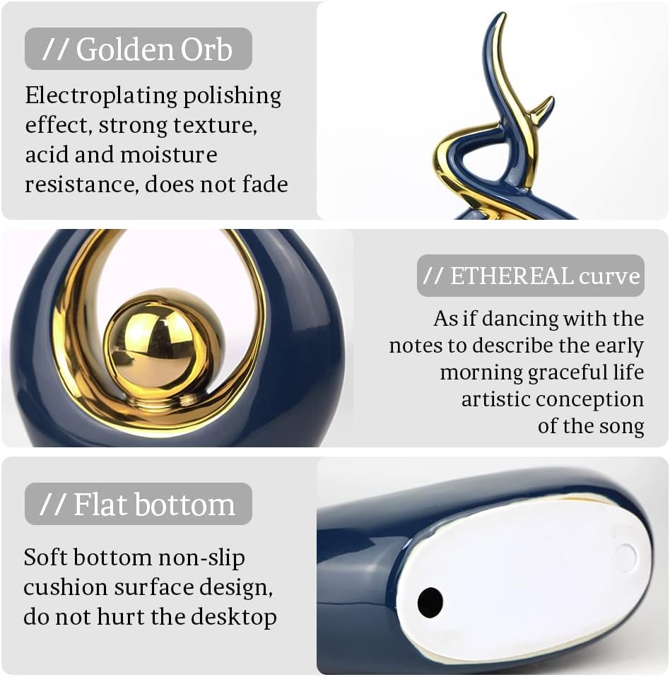 Norrclp Home Decor Modern Abstract Art Ceramic Statue Table Decorations for Dining Room Living Room Office Centerpiece (Blue and Gold, Large)