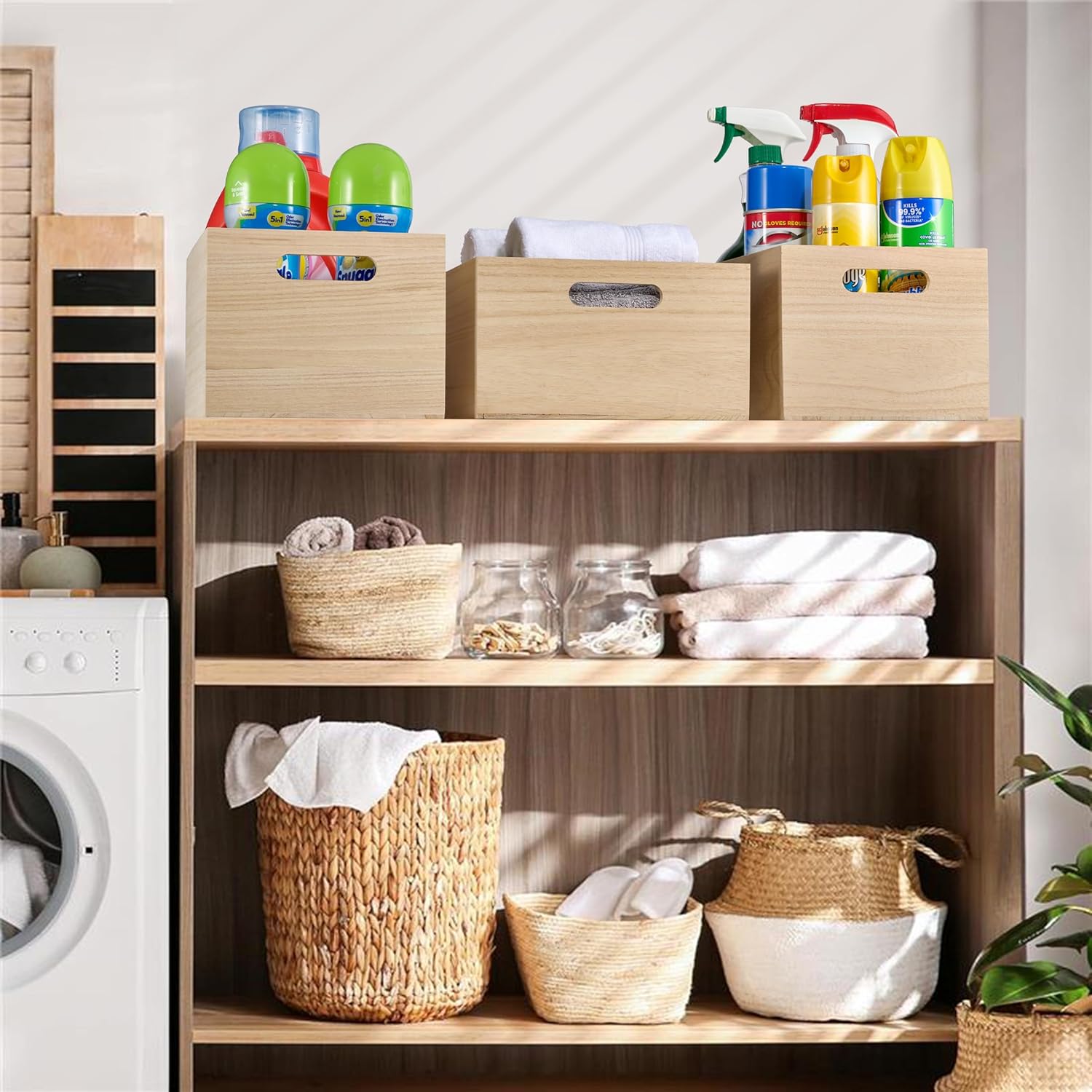 • WOODEN STORAGE BINS (4-PACK) — Provides modern storage for household essentials with a natural look — Pairs nicely with similar styles in the Sorbus Wood Bin Collection (sold separately)