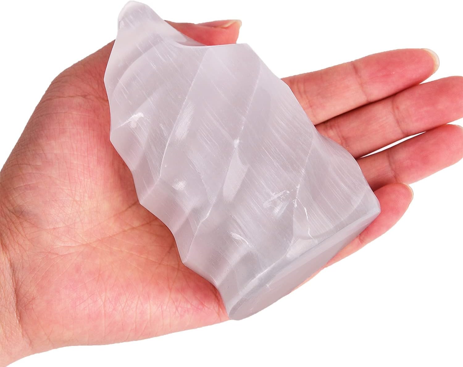 AMOYSTONE Selenite Crystal Tower Flame Shaped Stone Large Healing Crystal Meditation Home Decor 4"