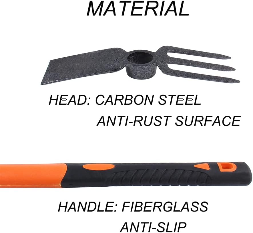 • DUAL HEAD: 3 cultivators are for breaking rocky surfaces such as gravel and hard dried earth while the flat end is for digging or hoeing soft soil