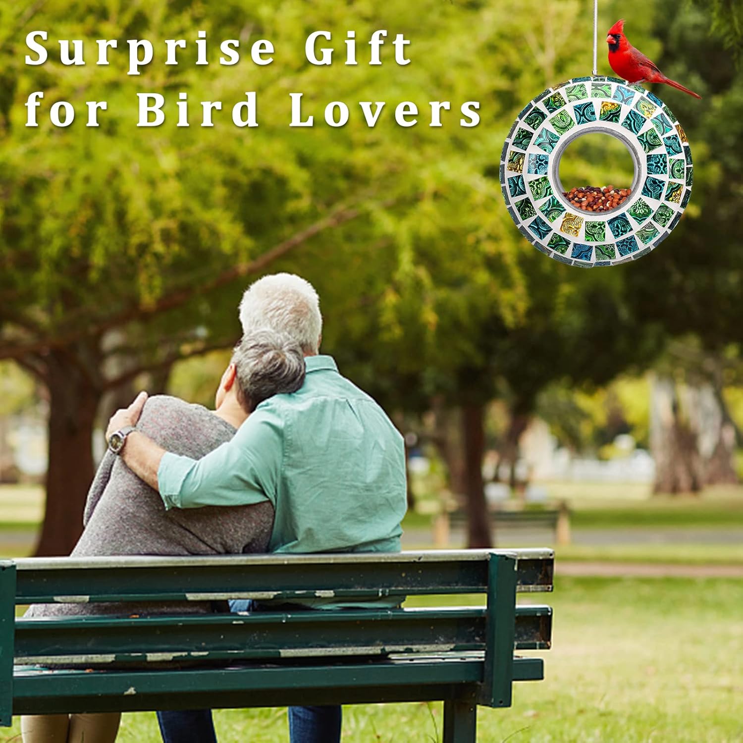 • Hanging Bird Feeder: Mosaic hang bird feeders for outdoors is made of strong mortar and glass. Birds can eat from the rim or hop inside during bad weather