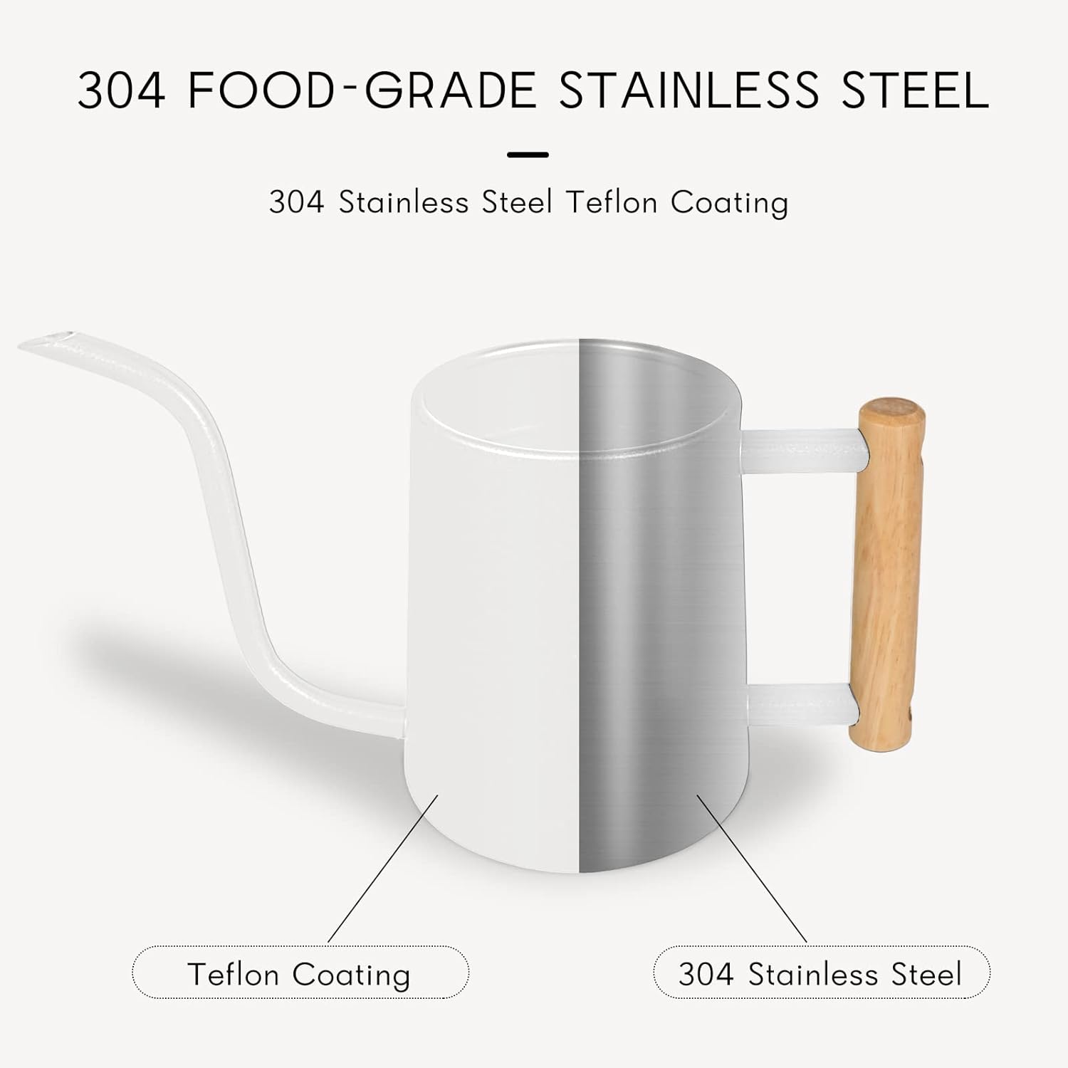 Watering Can Indoor Plants, 35 oz/1000 ml Metal Stainless Steel Watering Can Pot with Long Spout for Indoor House Plants Bonsai Outdoor Garden Flower Decorative (White)