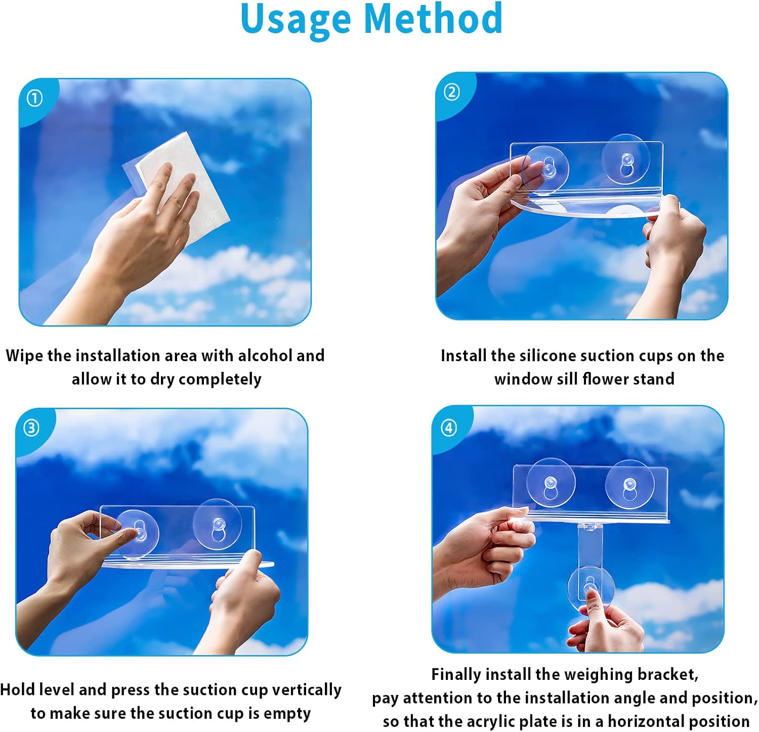 • STRONG SUPPORT BRACKET SET : Each acrylic suction cup home is equipped with a load-bearing bracket (equipped with a load-bearing 4-8 lbs) to increase the larger weighing capacity to keep it stable