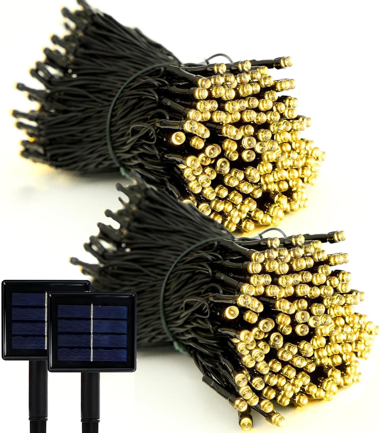 Solar String Lights 2 Pack, Outdoor Light Total 400 LED 144FT Solar Christmas Lights, 8 Modes Solar Lights Oudoor Waterproof for Tree Patio Yard Garden Christmas Parties Decoration (Warm White)