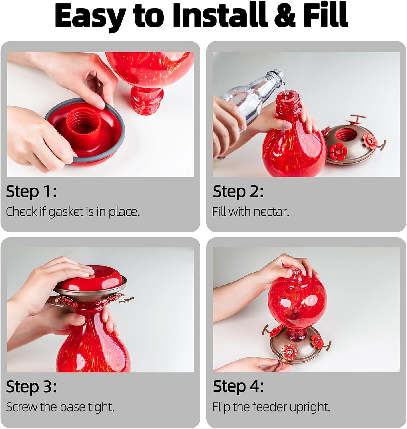 • 【Outdoor Garden Decor】: The ant moat will keep ants away from the sugar water. Please make sure the gasket is securely attached before you hanging outside. It will be the perfect backyard decor.