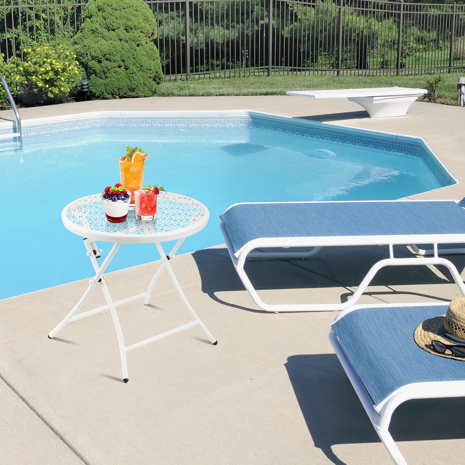 • No Assembly: This patio side table is ready to use, no assembly required. The small patio table folds down easily and opens back up fast. This foldable side table is a great buddy of your excursion, you can enjoy your cozy snack time with a smile heart