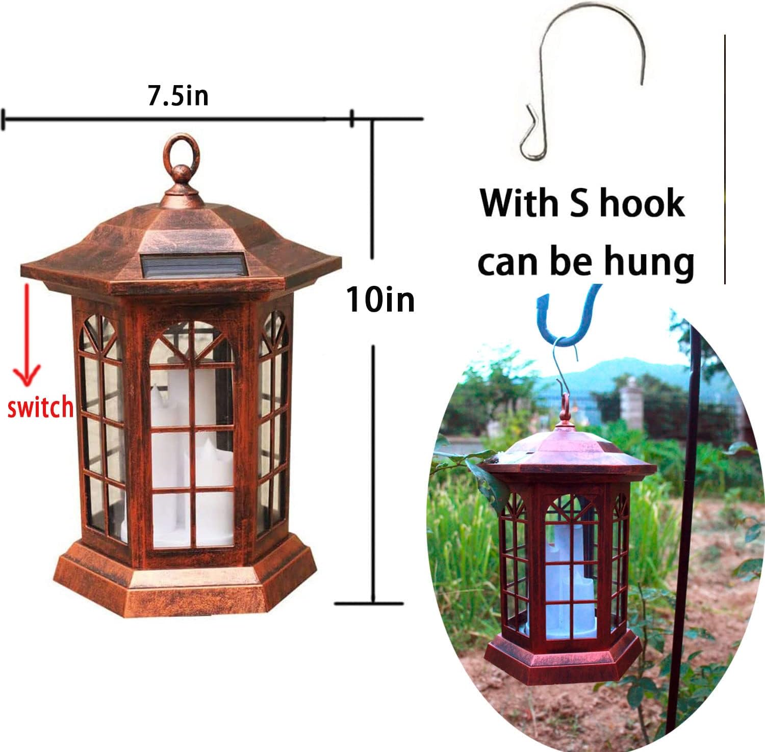 • 【easy to use】Each candle lantern is equipped with an "S" hook, so you can not only put it on the tabletop, but also hang it on a shepherds hook.this beautifully crafted solar powered lanternPerfect for garden