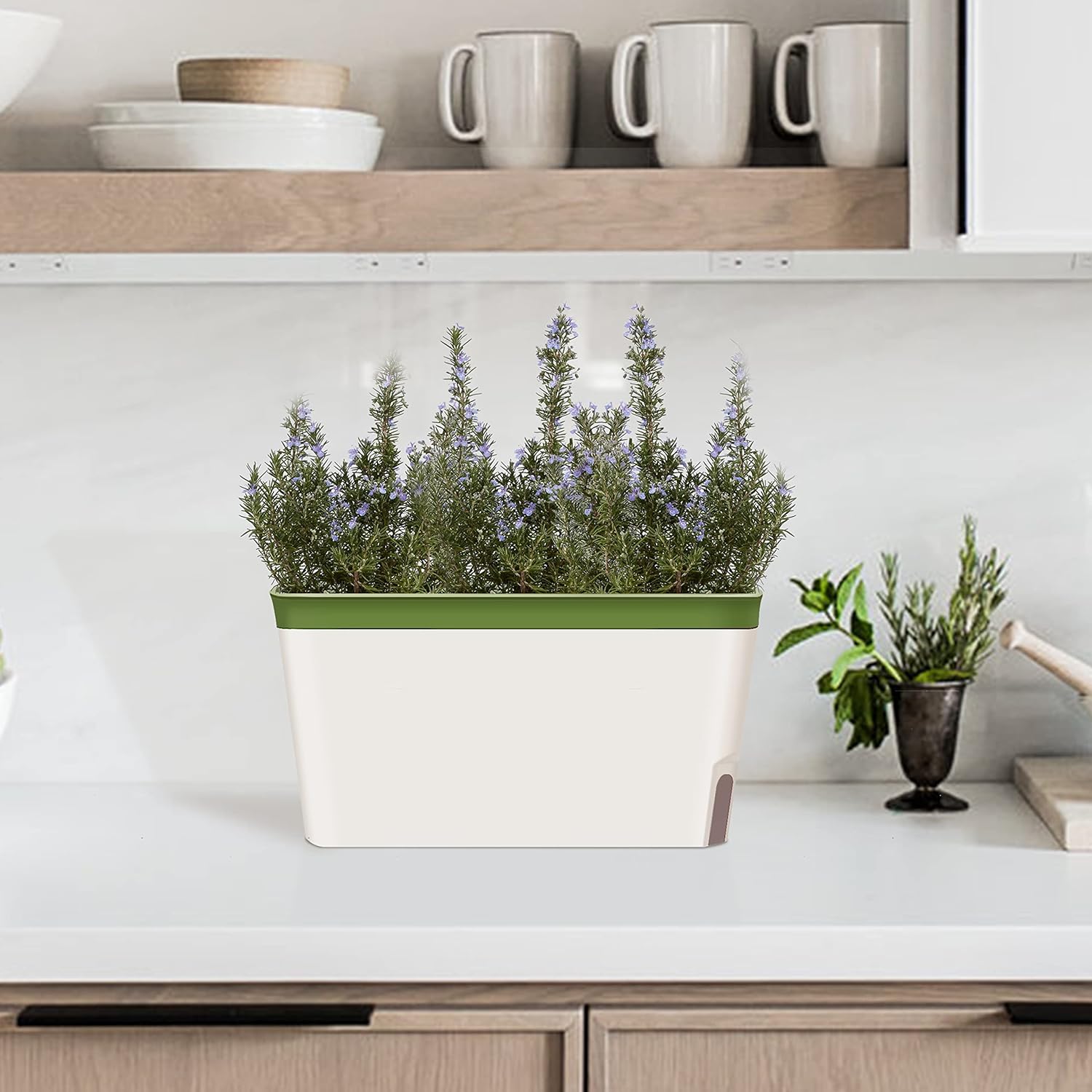 GardenBasix Self Watering Planter Pots Window Box for Indoor Plants Home Garden Modern Decorative Flower Pot for All House Herbs Succulents Set of 6 (6, Green(Rectangle))