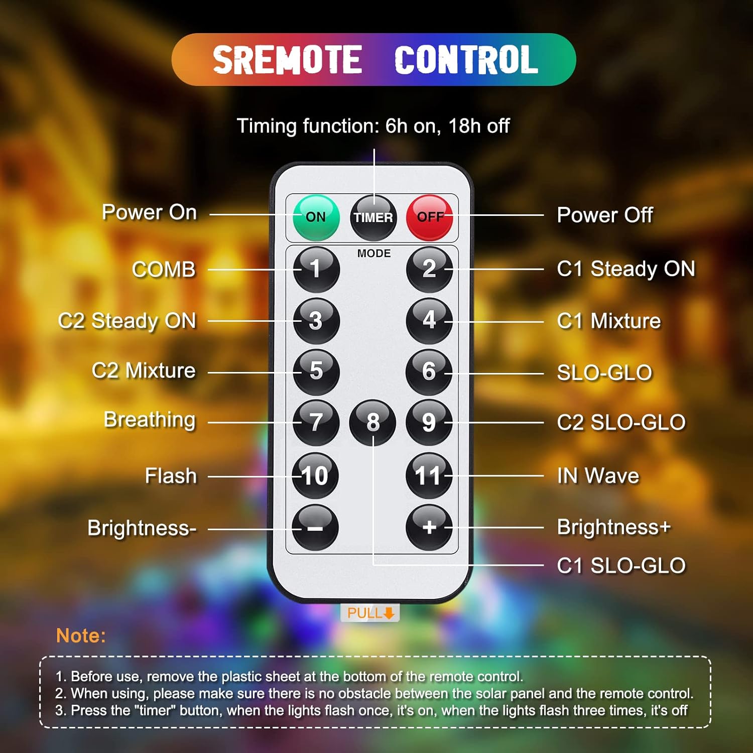 • Color Changing Solar Christmas Lights: Includes 2 packs of warm white and multi-colored solar Christmas lights with 11 lighting modes for indoor/outdoor use