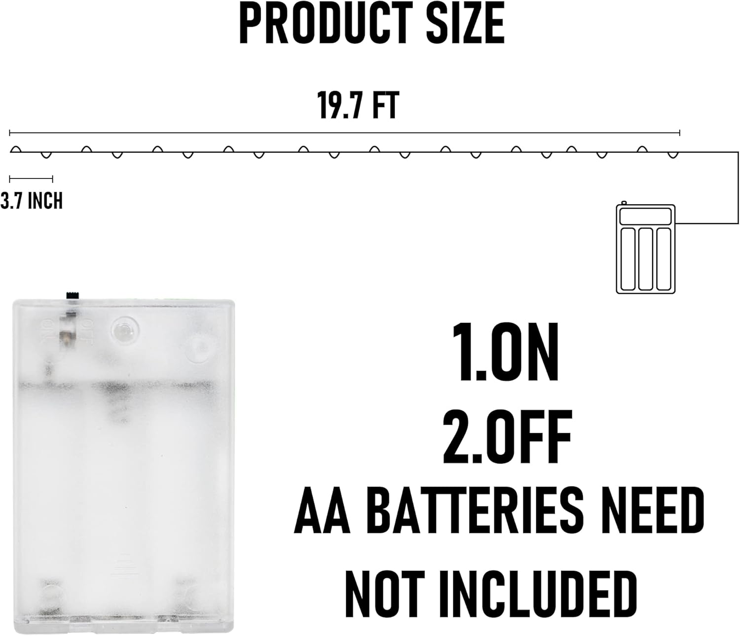 • Size: Dazzle Bright fairy lights comes with 60 LED bulbs. Bright lights exude a 360 degrees charming light, add a festival glow to your home. The fairy lights is 20 ft, bulb spacing is 3.7 inch.