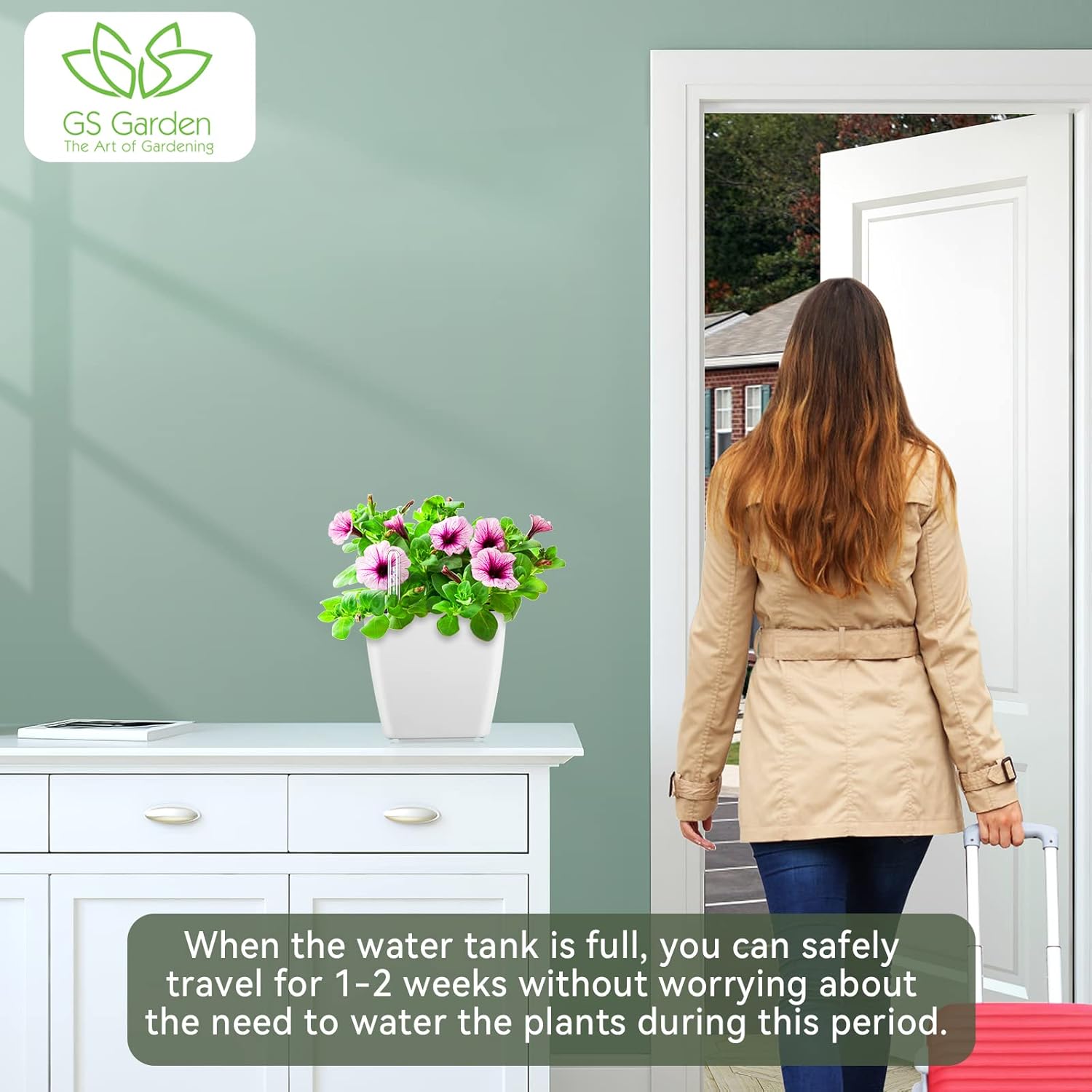 • GS Garden self-watering planters is an ideal plant pot for for All Outdoor/Indoor plants. The special water inlet design can avoid soil collapse and lead to excessive hardening of the flower soil. The root system can fully grow in the soft soil.Ideal for residential and commercial grades