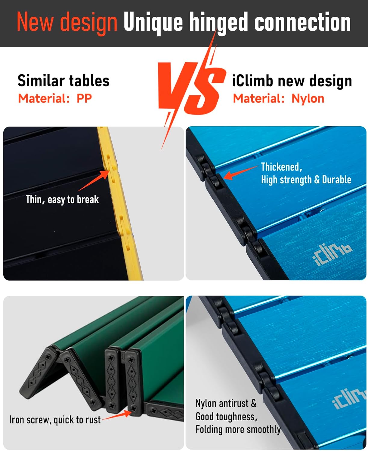 • Ultralight, made of high quality aluminum alloy 6063, only 1.5 lbs; Max Load 66 lbs; Unlike wooden or nylon-top tables, this table is durable, waterproof, corrosion-resistant, easy to clean; Heat resistant, can put your stove on