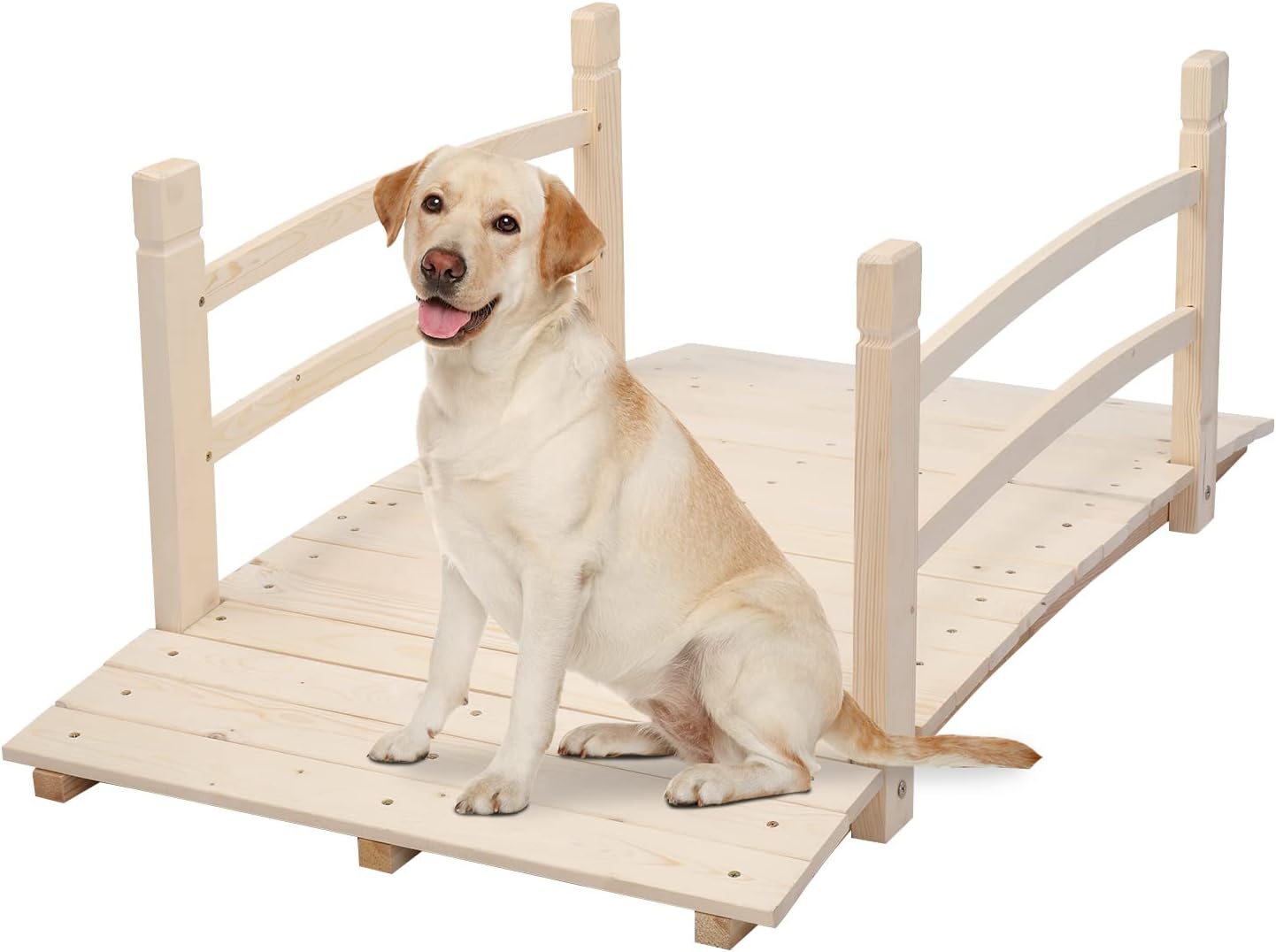 • ✔ [Decorative Bridge] Natural finished fir wood makes it possible to DIY paint and personalize your wooden bridge to match your unique garden.It is a beautiful landscaping to your koi pond, dry creek bed, garden pathway or Japanese zen decor. The assembled size is L48.4*W26.8*H18.4".