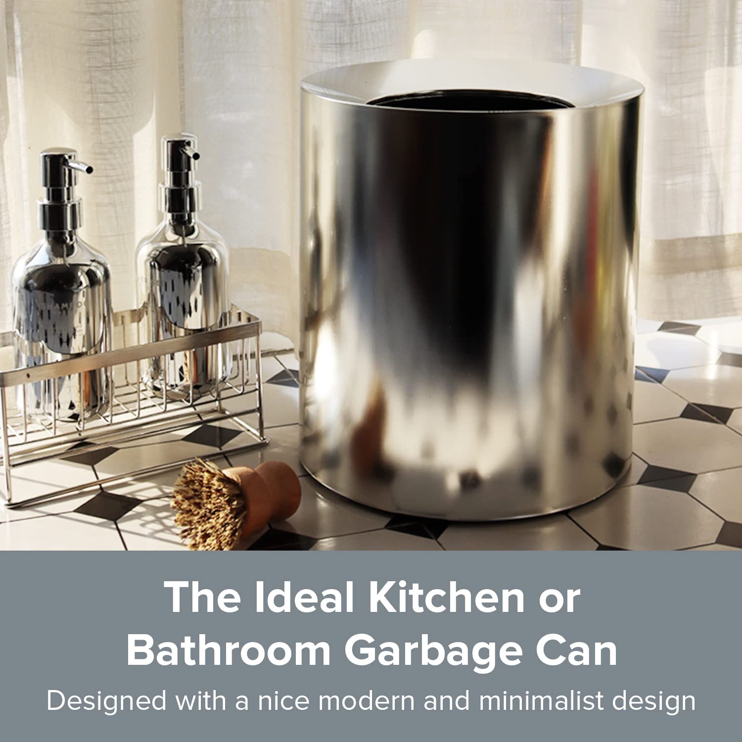 • The Ideal Kitchen or Bathroom Garbage Can - Whether you're busy making meals or you're simply doing your own thing, you can literally drop your trash then go when you have this convenient 8 or 12-liter modern garbage bin. With a thick and wide rim, truly makes for the perfect kitchen garbage can or bathroom wastebasket without fear of spilling all the nasties