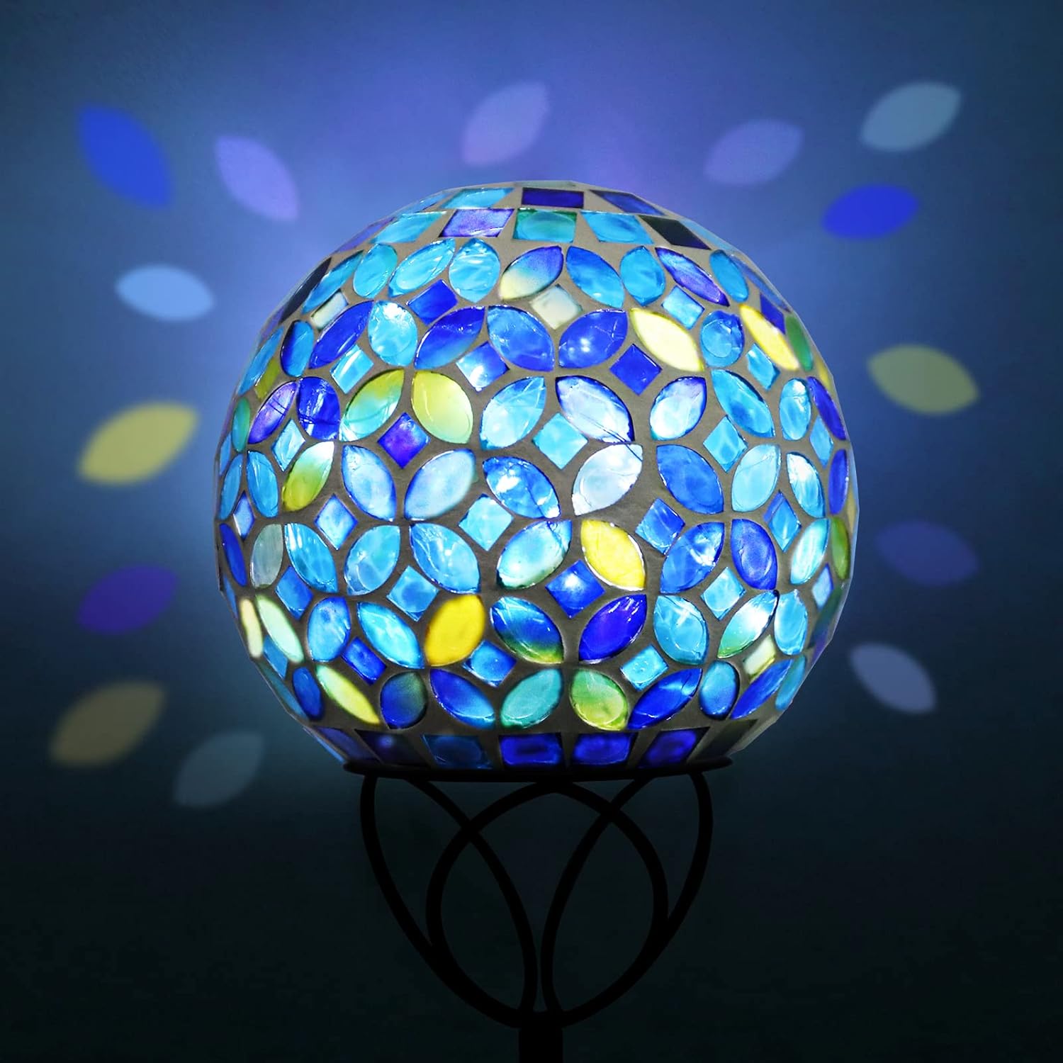 VCUTEKA Solar Outdoor Lights Garden Decor Mosaic Solar Garden Lights Waterproof Glass Ball LED Pathway Stake Light for Landscape Lawn Patio Yard Decoration 6 inch, Blue