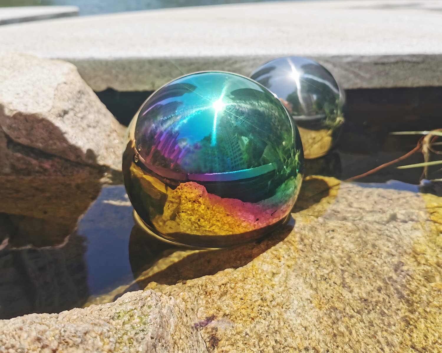 • Package:Package includes 1 gazing mirror ball.Diameter 8 inches, Color-rainbow. There is a small hole on the rainbow gazing globe ball due to the color transition process requirements