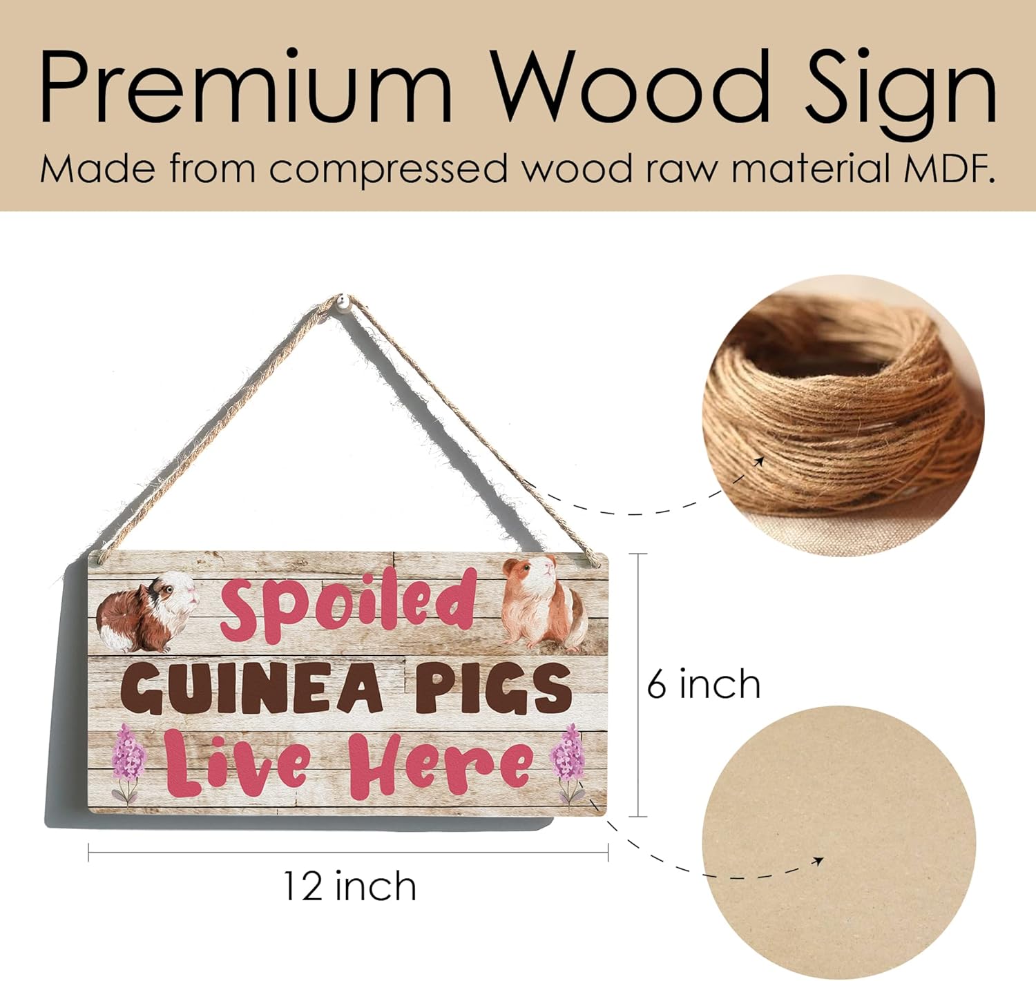 Qious Spoiled Guinea Pigs Live Here Sign Farmhouse Lovely Guinea Pigs Wooden Hanging Sign Plaque Rustic Wall Art Decor Home Decoration 12 x 6 Inches