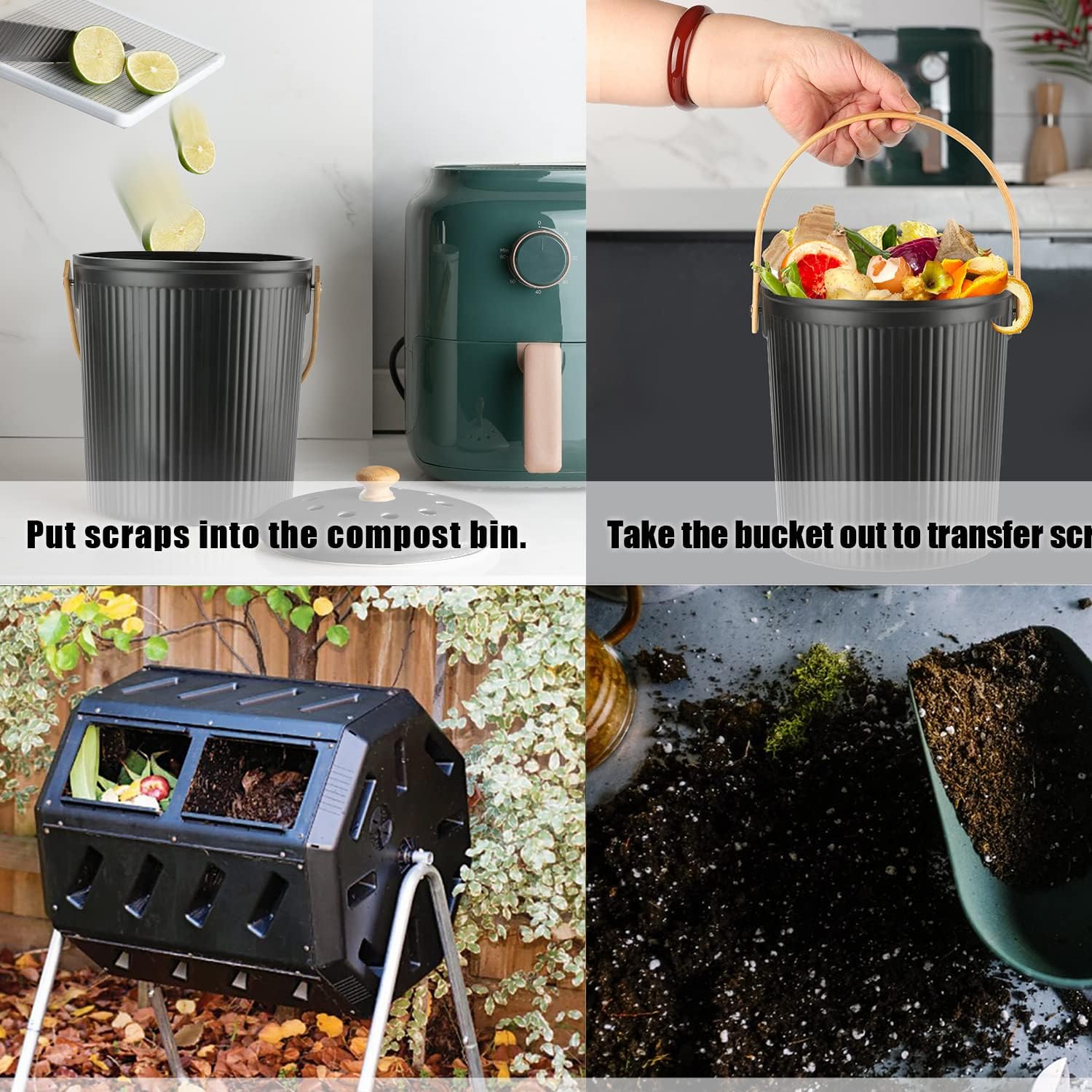 • Practical: Store your food scraps, vegetable peelings, tea leaves, flowers, coffee grounds and other compost materials with this compost bucket. Never waste your food scraps again and create your own eco-friendly rich compost for your garden.