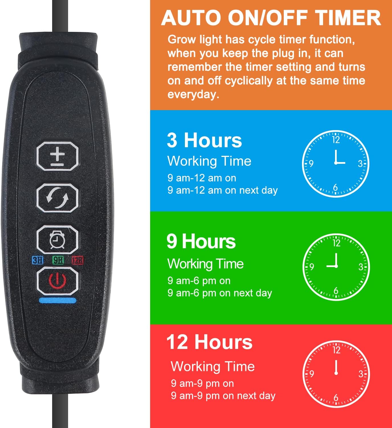 • 🌱【3 Color Settings & 10 Levels Dimmable】There are 3 color modes - Red Light,3500K Warm White Light, and Cool White Light, infinite close to natural sunlight, best for plants at all growing stages. Also, it supports you to adjust the brightness within 0%-100% by operating the controller.
