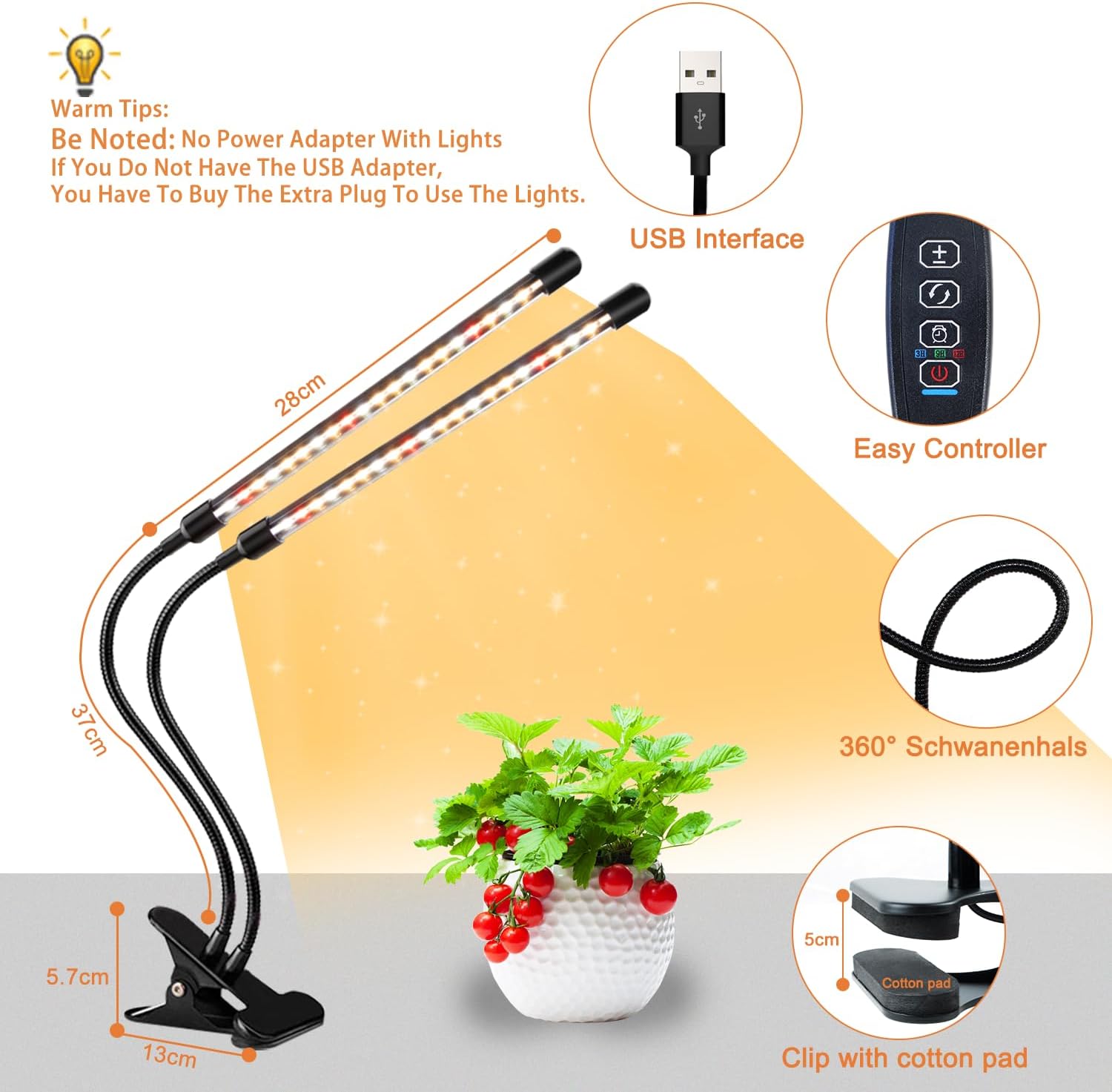 • 🌱 【Be Noted: No Power Adapter With Lights ] To Protect The environment Well, Power Adapter or Plug Are Not Contain In The Package. Your Mobile Phone Charger, Power Bank, Notebook, Computer, Tablet, or Power Strip Whose Has USB 5V Output Can Work With The Grow Lights. If You Do Not Have The Charging Adapter, You Have To Buy The Extra Plug To Use The Lights.