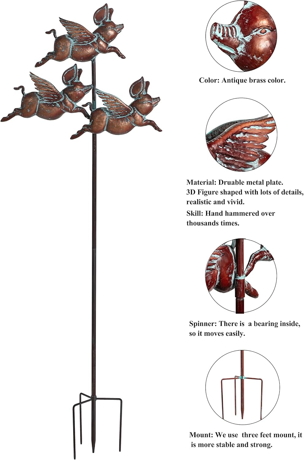 Flying Pig Statues,90" x 32" Antique Copper Outdoor Flying Pigs Garden Decor,Metal Pig Sculpture,Wind Spinner,Weather Vane,Yard Art for Patio,Lawn,Garden,Country Cottage,Farm