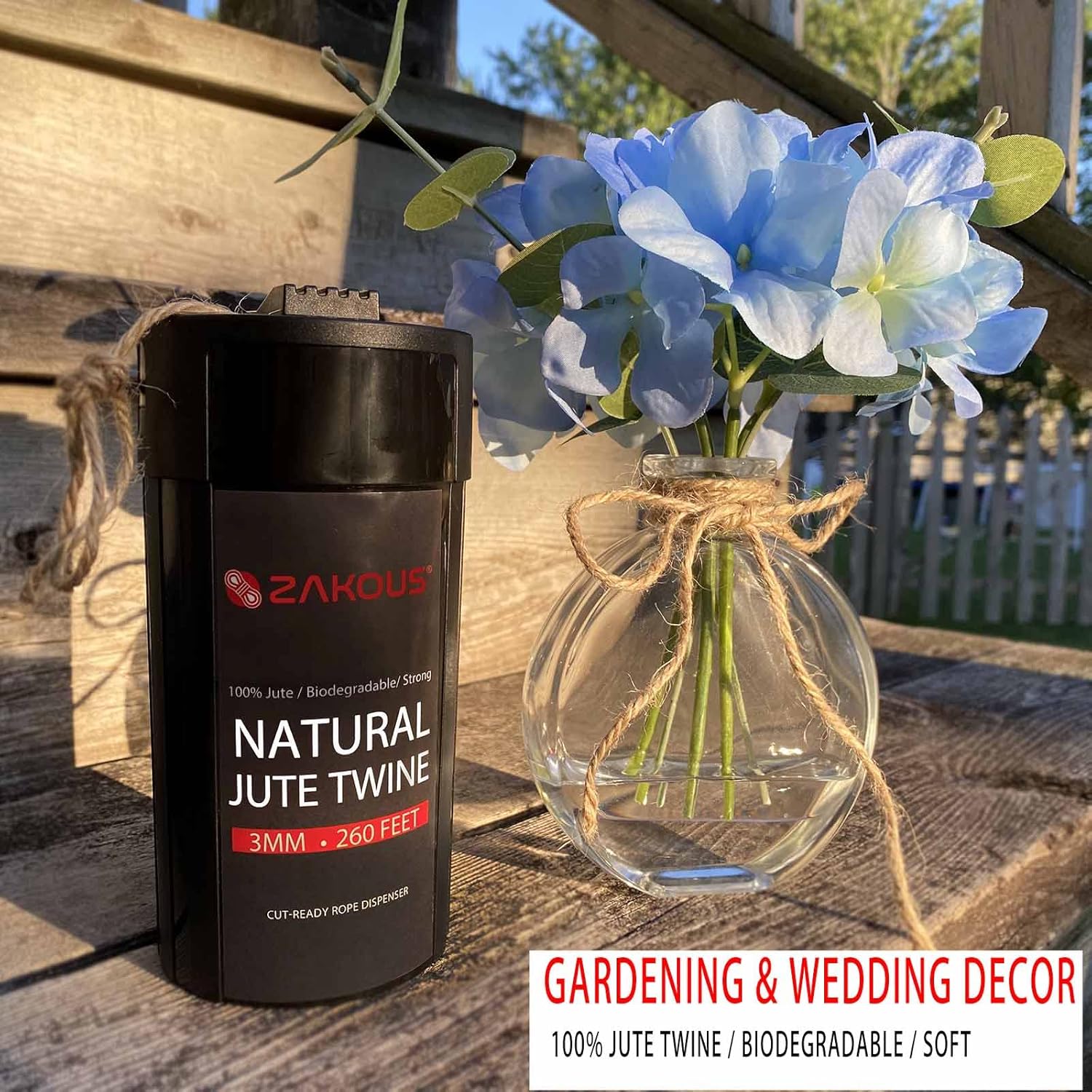 Cut-Ready Rope Canister with 260 Feet Non-Tangle Natural Jute Twine, 3MM Strong Twine String for Crafts, Gift Wrapping, Packing, Gardening and Wedding Decor(3mm x 260ft)