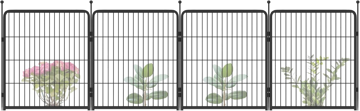 FXW Garden Fence Outdoor for The Yard – 32in(H) x 9.1ft(L) Heavy Duty Metal Animal Barrier for Dog and Rabbit, Decorative Dog Fence, 4 Panels, Black