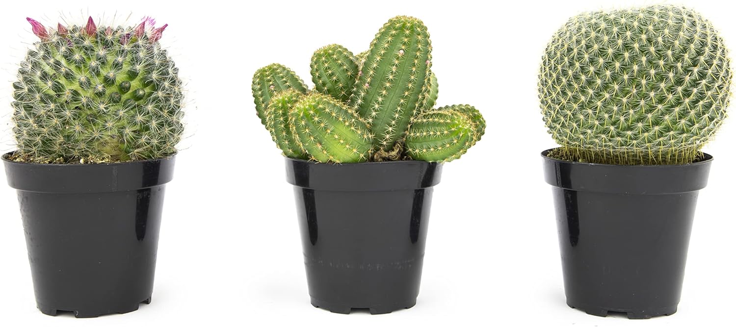 • LIVE CACTUS PLANTS: An assortment of baby cacti plants featuring 3 quality small cactus plants in 3.5" nursery pots. Our variety pack includes cacti perfect for use as houseplants or patio plants.