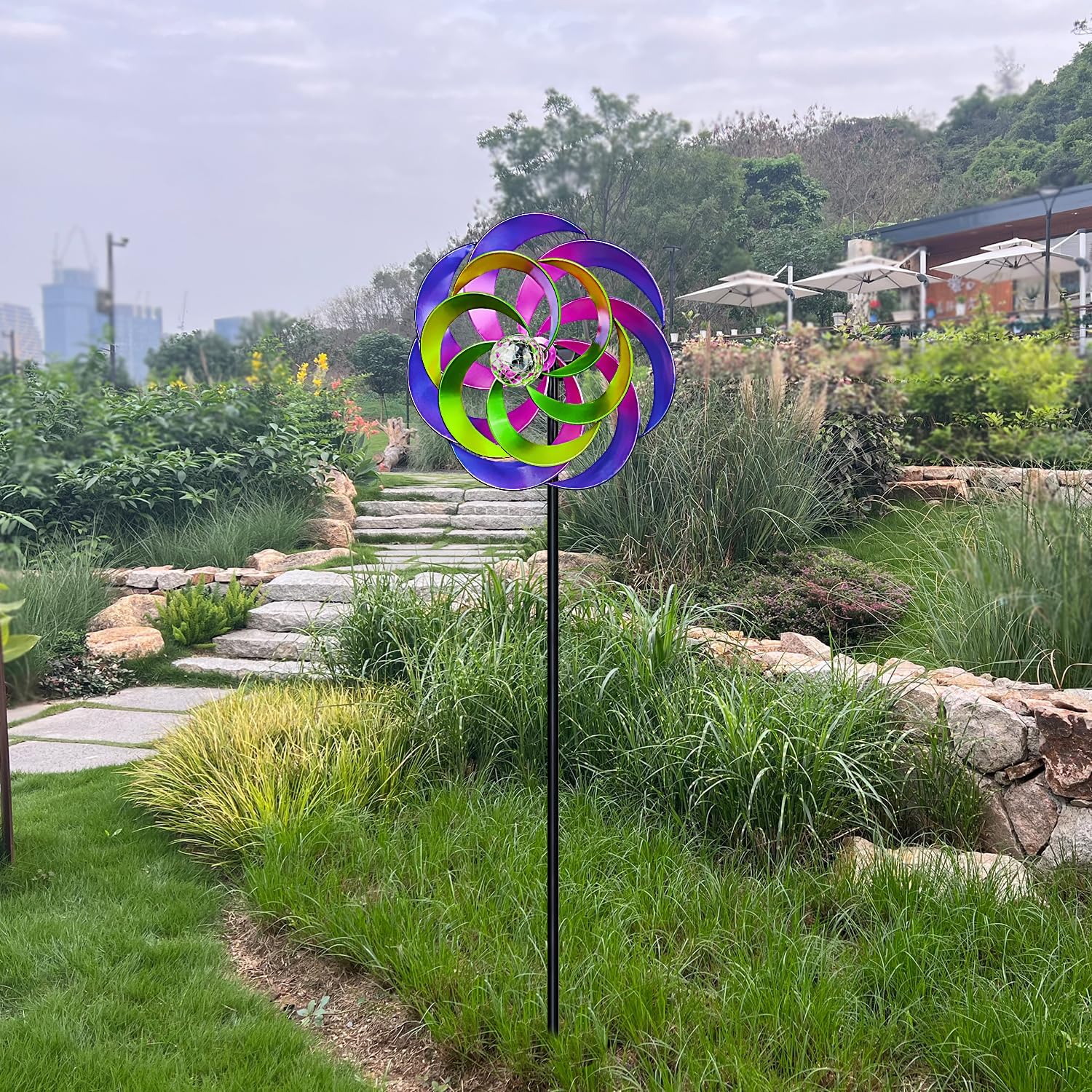 • PERFECT FRONT YARD DECOR --- Our yard art wind spinners can add a touch of ambiance to your patio, lawn, or garden, Relaxing to watch while spending time out on the sun porch or yard.