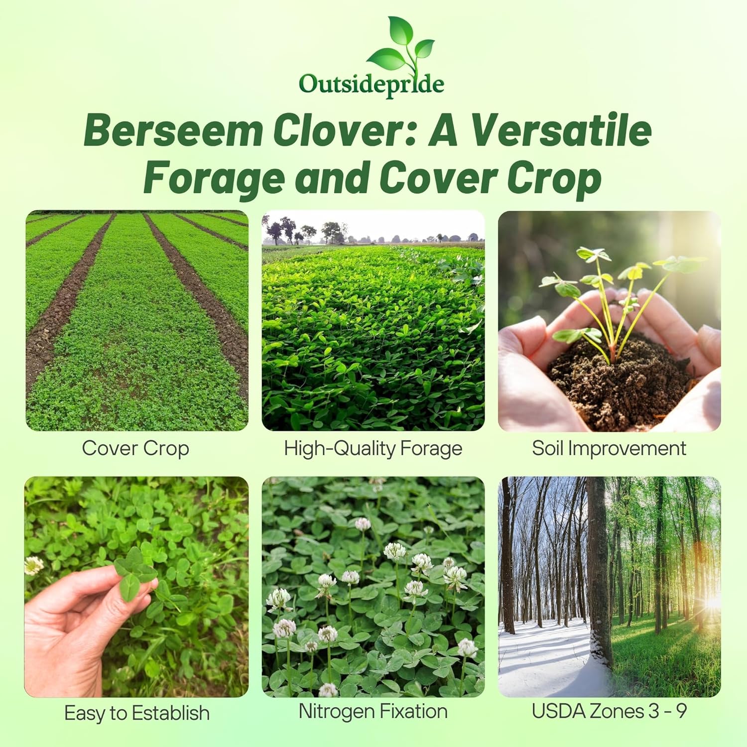 Outsidepride Annual Berseem Clover Seeds for Lawn - 50 lbs. High-Yield, Fast-Growing Clover Cover Crop Seeds for Food Plots, Cattle Forage & Nitrogen-Rich – Ideal for Pastures & Soil Improvement