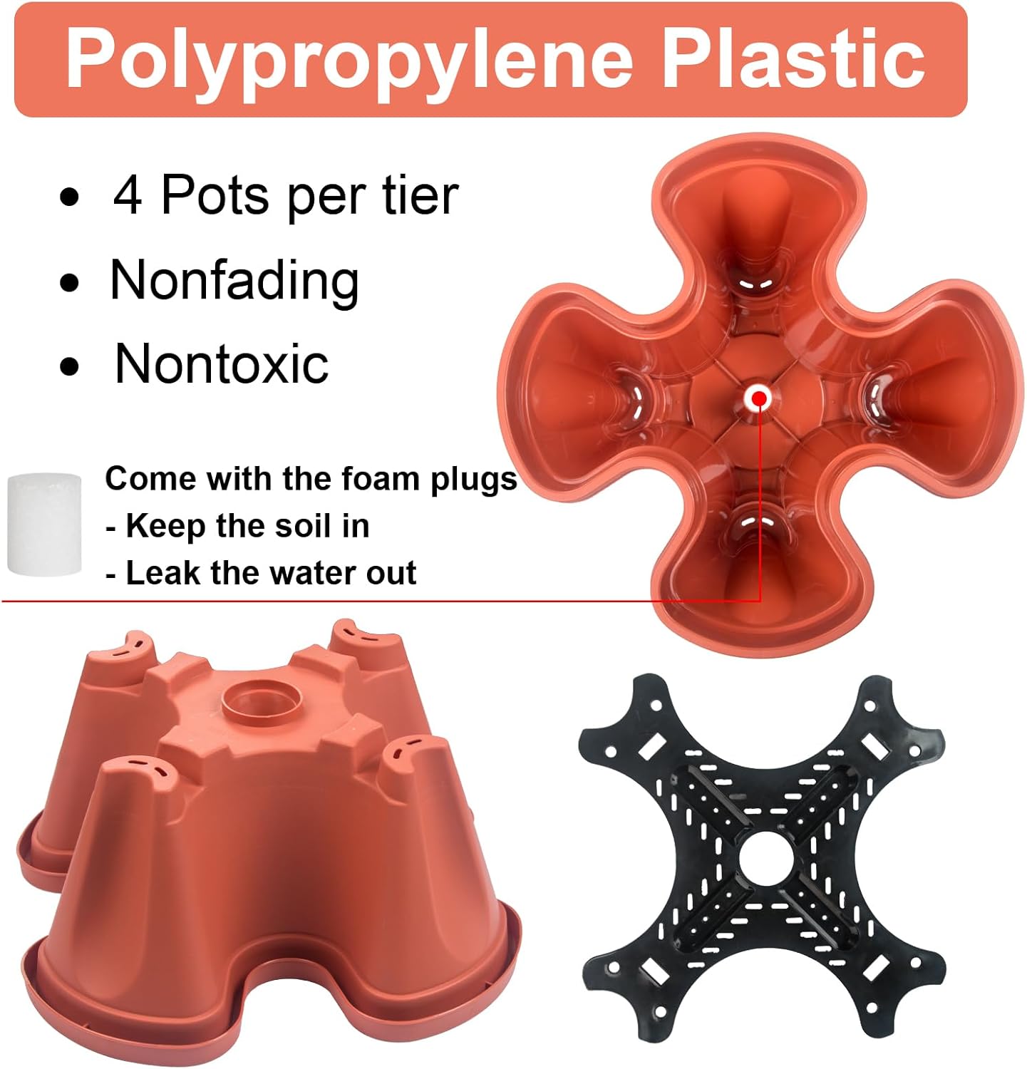 • SOIL HOLDING BOARD - Each tier has a board that holds soil while allowing water to drain down.