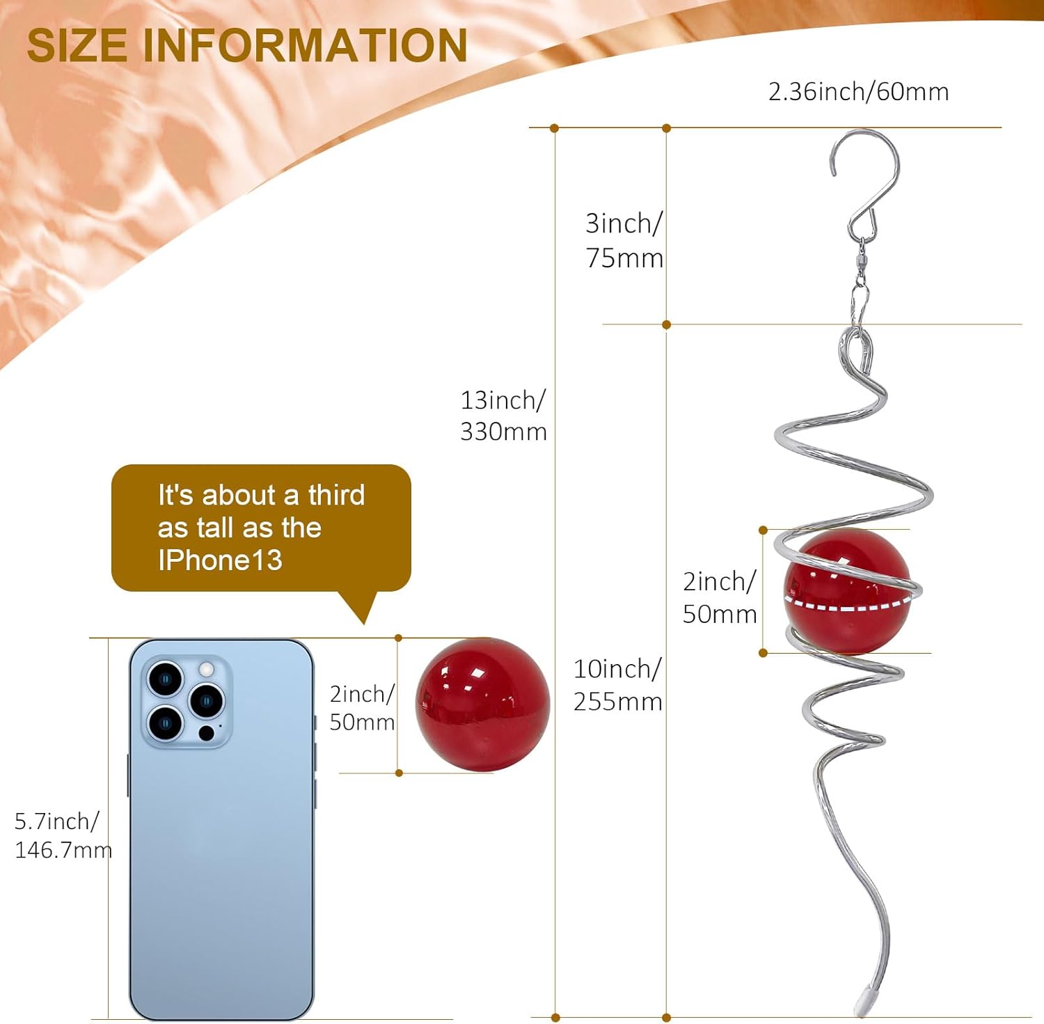 • 【 High Quality Spiral Tail Decor 】This stainless steel wind spinner spiral tail is made of 304 stainless steel wire, the colored ball is made of pure solid K9 crystal glass material. The crystal glass balls combined with stainless steel wire are colorful shining. Exceptionally resistant to inclement weather, the ball of the spiral tail will not fade even in direct sunlight. There are many colors to choose from for this decorative spiral wind-spinner to match any decor.
