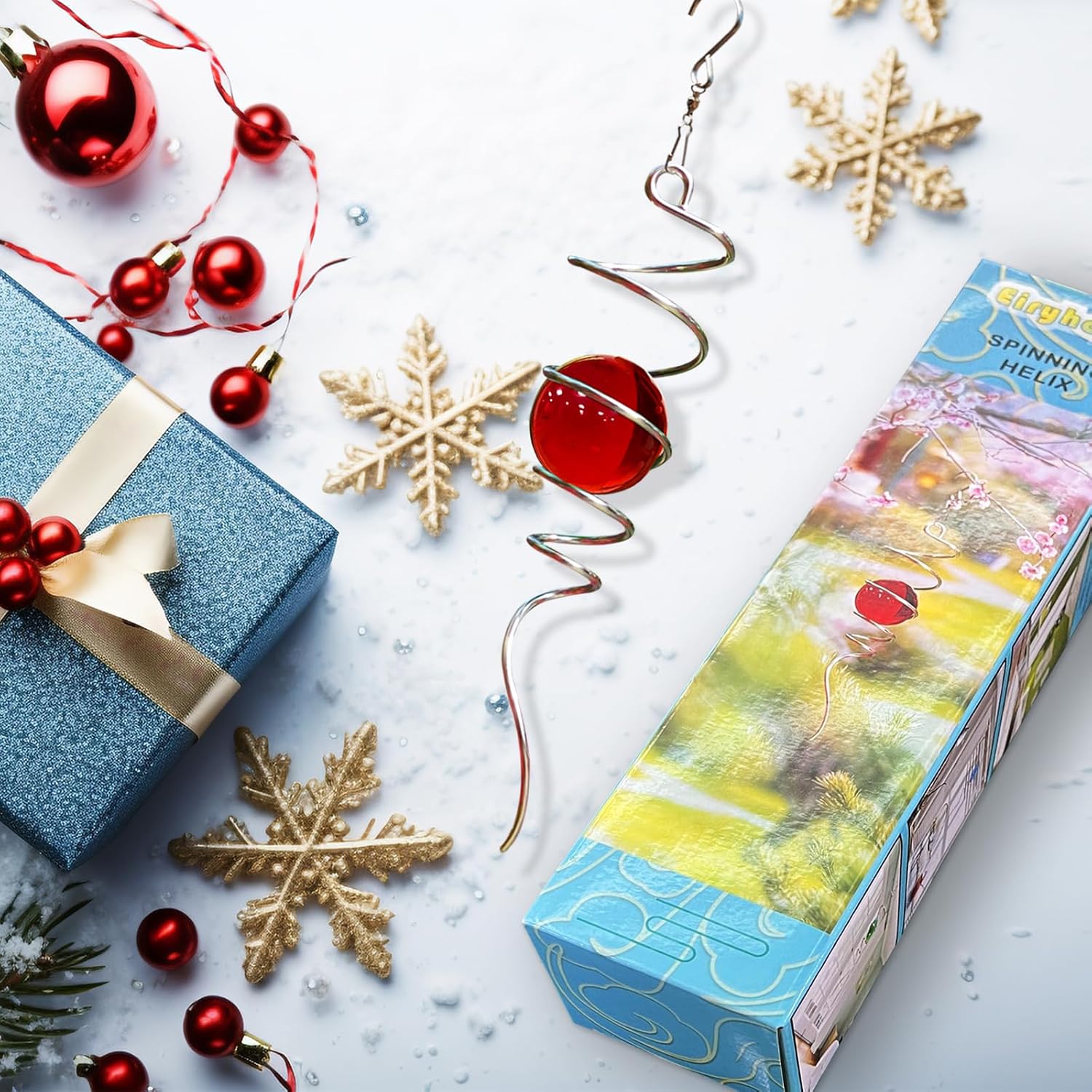 Gazing Ball Spiral Tail with Red Glass Orb - 13" Wind Spinner Stabilizer with Swivel Hook, Hanging Decor for Indoor Outdoor Garden Decor Rotating Art Ornament Christmas Décor & Unique Gift