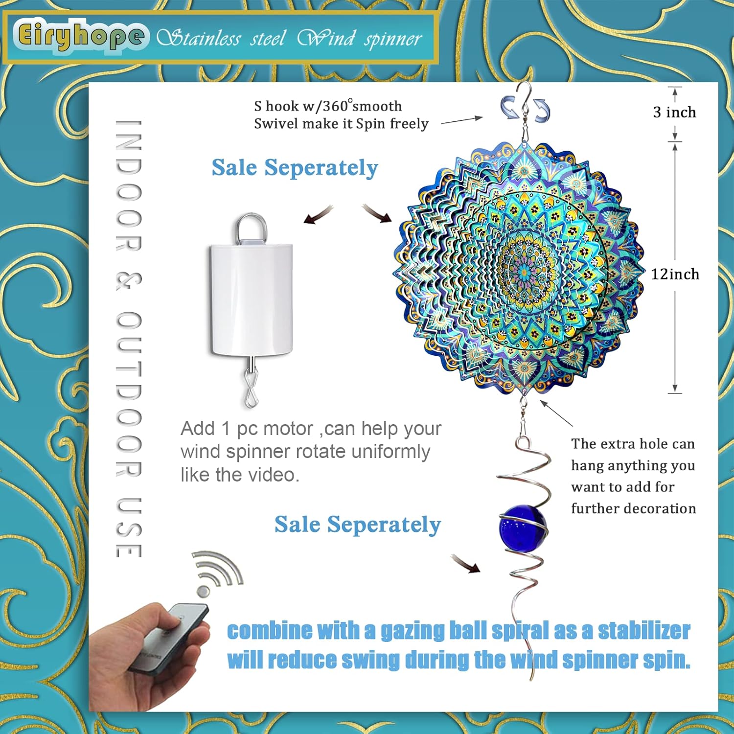Wind Spinner Mandala Peacock - 12In Laser Cut Stainless Steel Wind Spinners Outdoor, 3D Kinetic Hanging Sculpture, Rustproof Metal Garden Decor Yard Art, Unique Gift for Women, Men, Holidays