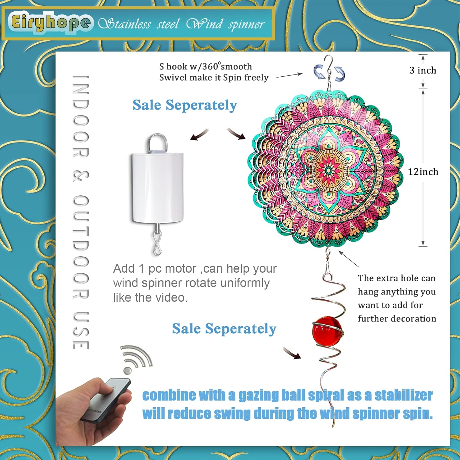 Mandala Manjusaka Wind Spinner - 12″ Stainless Steel Hanging Sculptures | 3D Kinetic Laser Cut Metal Art Decoration for Yard/Garden/Indoor, Creative Decor Gift