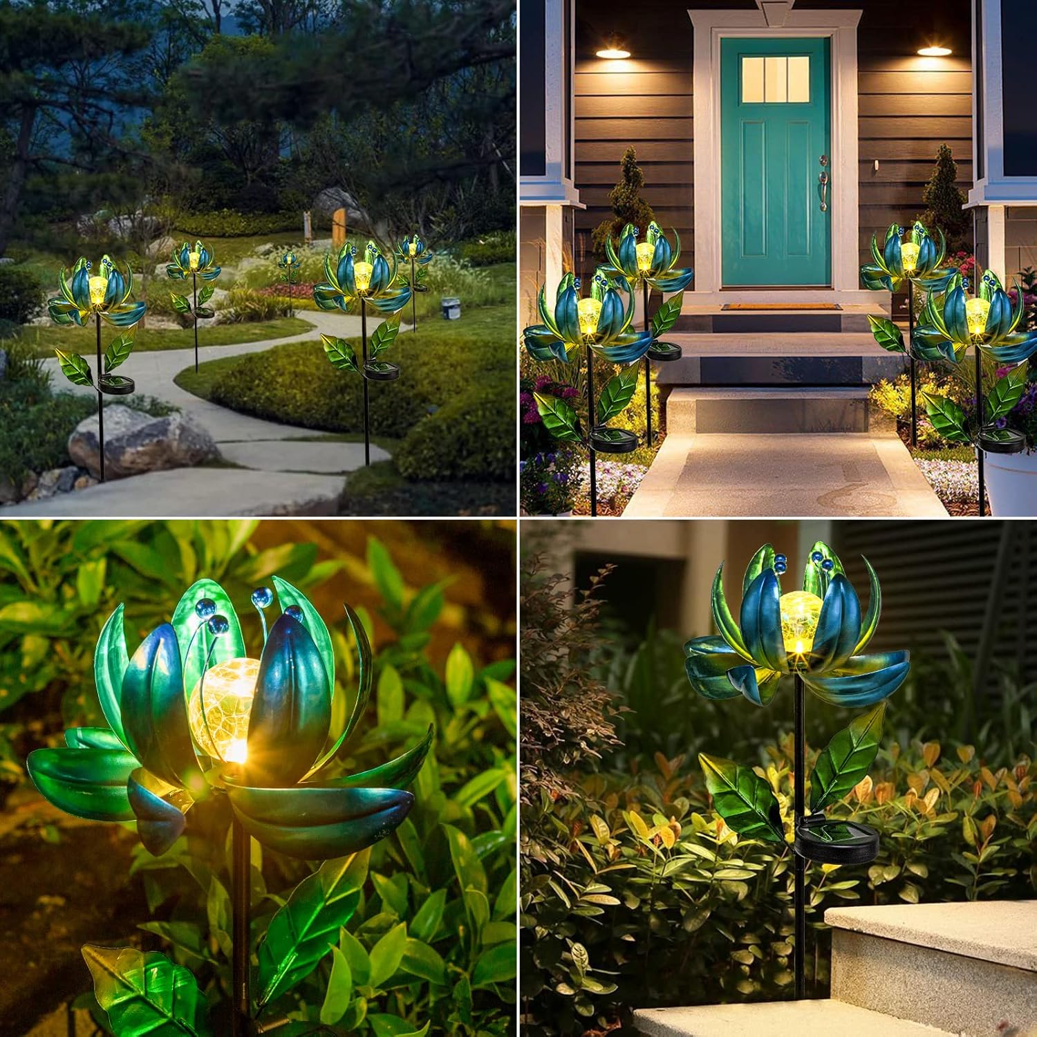 • Gorgeous Garden Decor: Outdoor solar lantern has a unique and decorative design,Inspired by elegant lotus, brings fun and whimsical charm to your garden.a striking wind spinner by day, a spectacular light show by night.