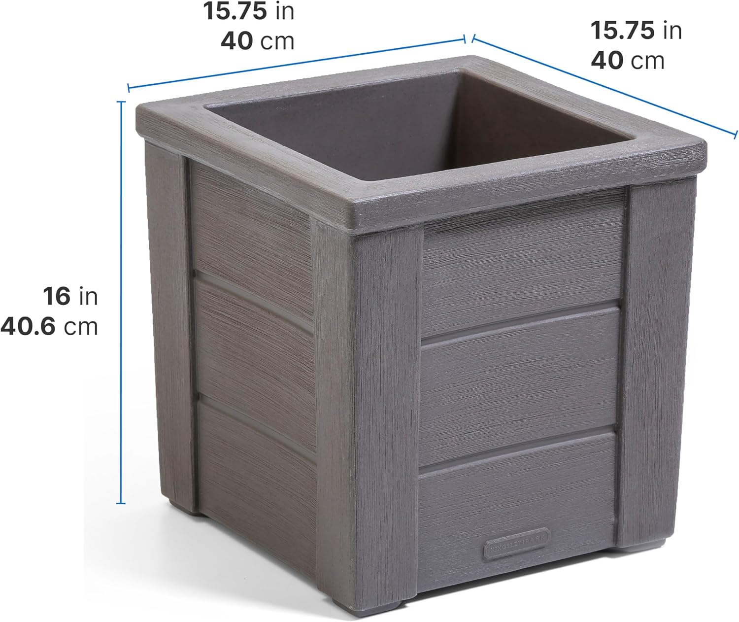 • EASY SET-UP: Comes pre-assembled and ready to use (potting soil and plants not included), holds 19 dry quarts of soil, includes 2 planters and 2 plugs, dimensions 16" H x 15.75" W x 15.75" D