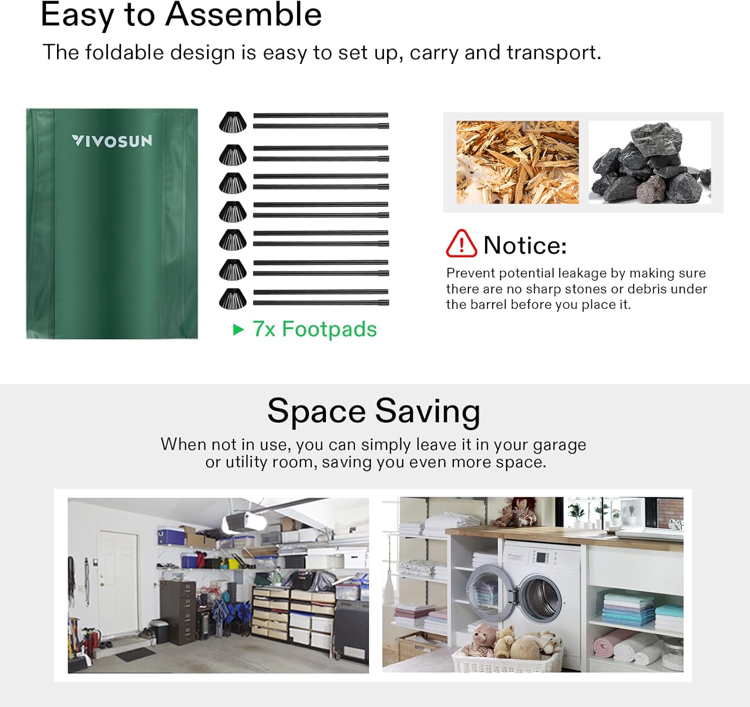 • High-Quality Materials: Our rain barrels are made from 1000D Oxford fabric with a thickened PVC coating to prevent freezing/breakage in bad weather and last a long time; Minimum working temperature: -15°C