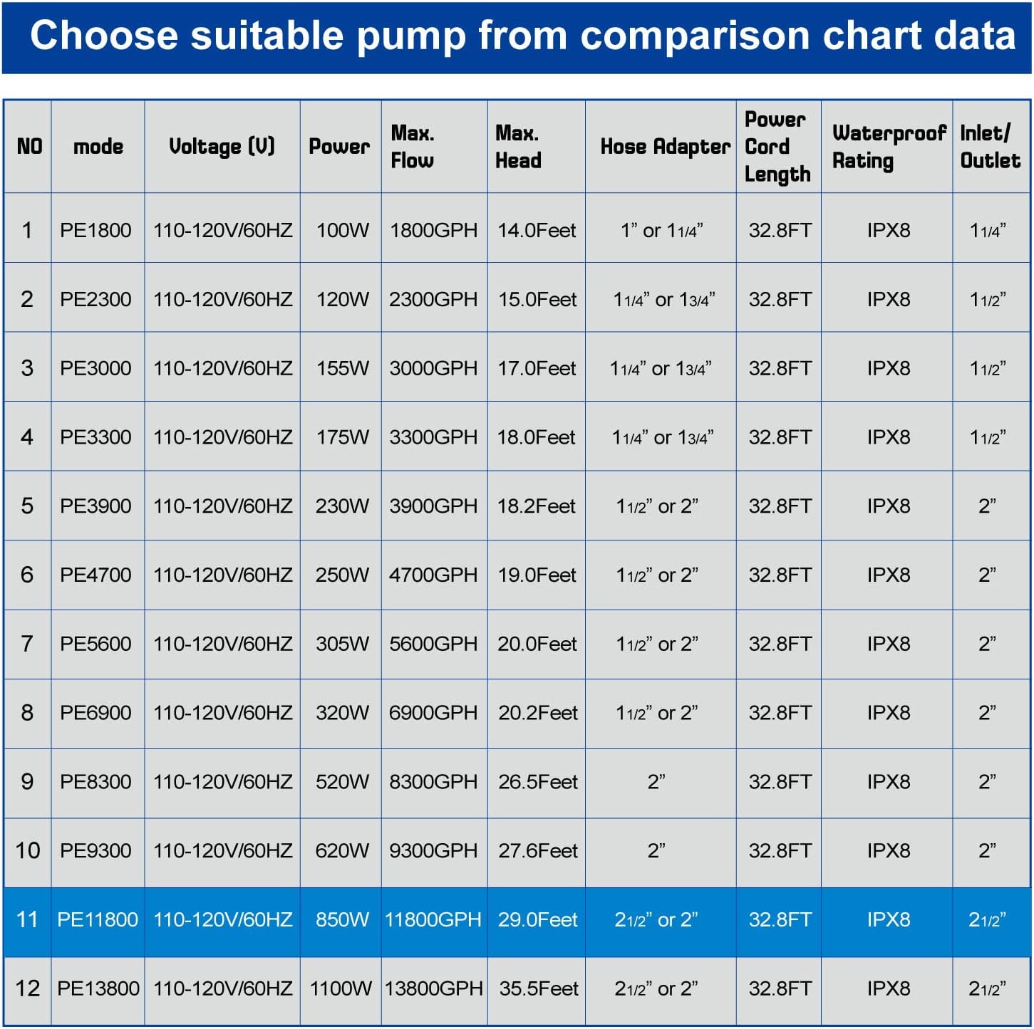 • 【Smarter & Quieter】-EASY INSTALLATION: It is AMPHIBIOUS, not only a larger outdoor 11800gph pond waterfall pump (New upgaraded quieter&powerful pond submersible pumps for outdoor ponds) but also can be used on dry land for more applications. With 32.8 feet SUPER LONG CORD, it can meet a variety of distance requirements. Large 11800gph pond waterfall pump for outdoor ponds comes already assembled. All you need to do is just to place it in the pond water-fall pumps and plug it in, which is so easy