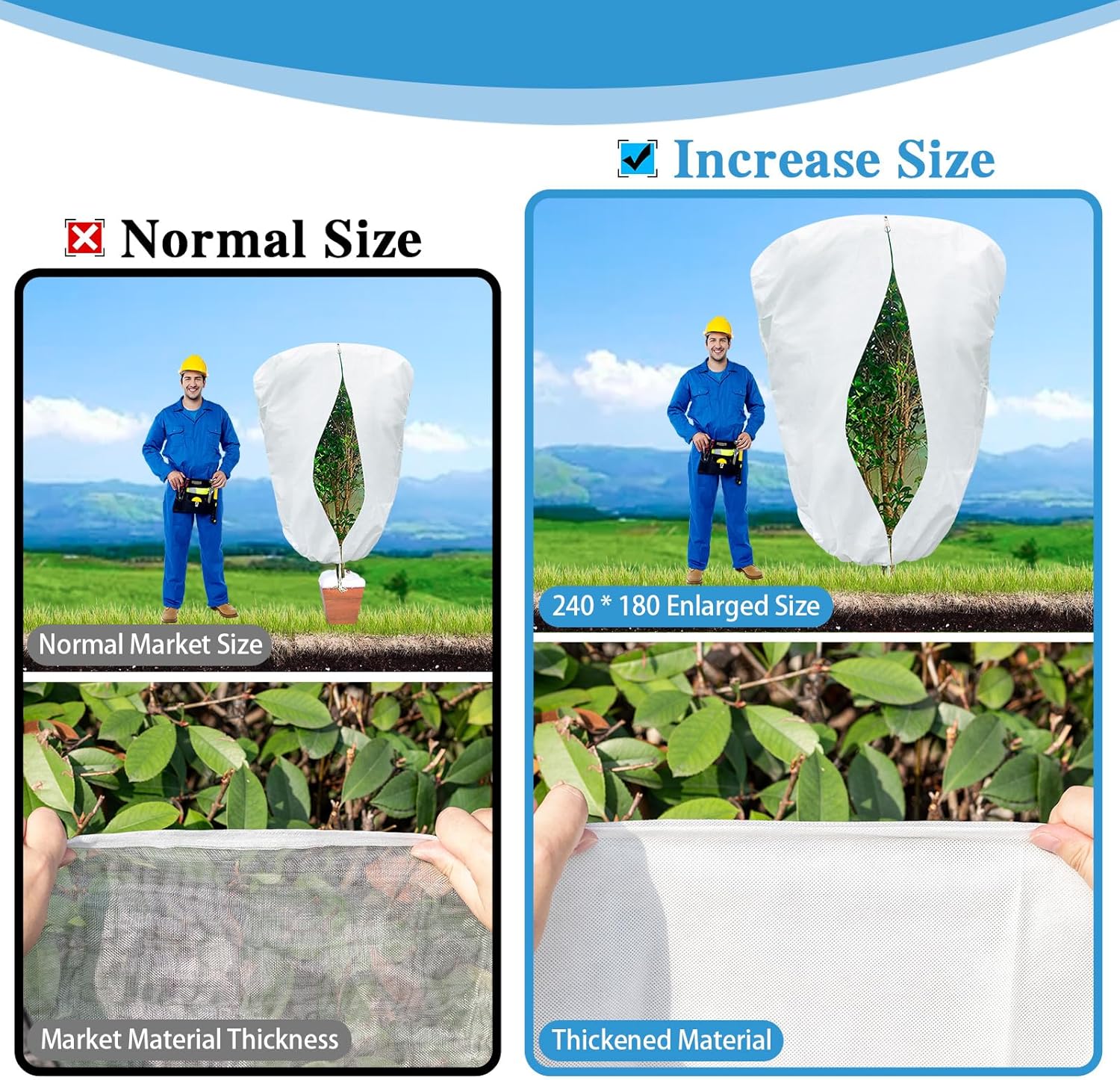 Plant Covers Freeze Protection, Frost Blankets for Outdoor Plants with Drawstring and Zipper, 2.5 oz/yd² 7.9 X 6.6 Ft, Reusable Winter Plant Protector Bag for Protect Trees Shrubs from Cold Frost