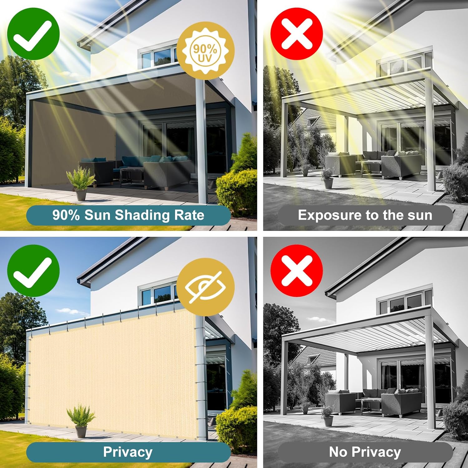 • Multiple Applications: This shade trap screen creates a comfortable outdoor seating area for you, offers a level of privacy from the outside without completely blocking your view of it. You can also use it to shield your greenhouse and plants from excessive sun exposure, or cover your pet house. Don't let the sun dictate your outdoor activities; take control with Shade&Beyond premium shade solution