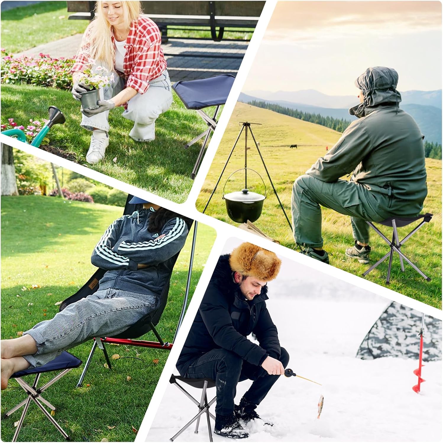 • MULTIFUNCTIONAL SMALL FOLDING STOOL: When you have to stand in line for any length of time. Or the demands of work that always requires your body to stay low. Or want to take a break when you're on a hike. Or fishing, garden work, and more. You all need a stool sitting. This portable seats for adults does just that.