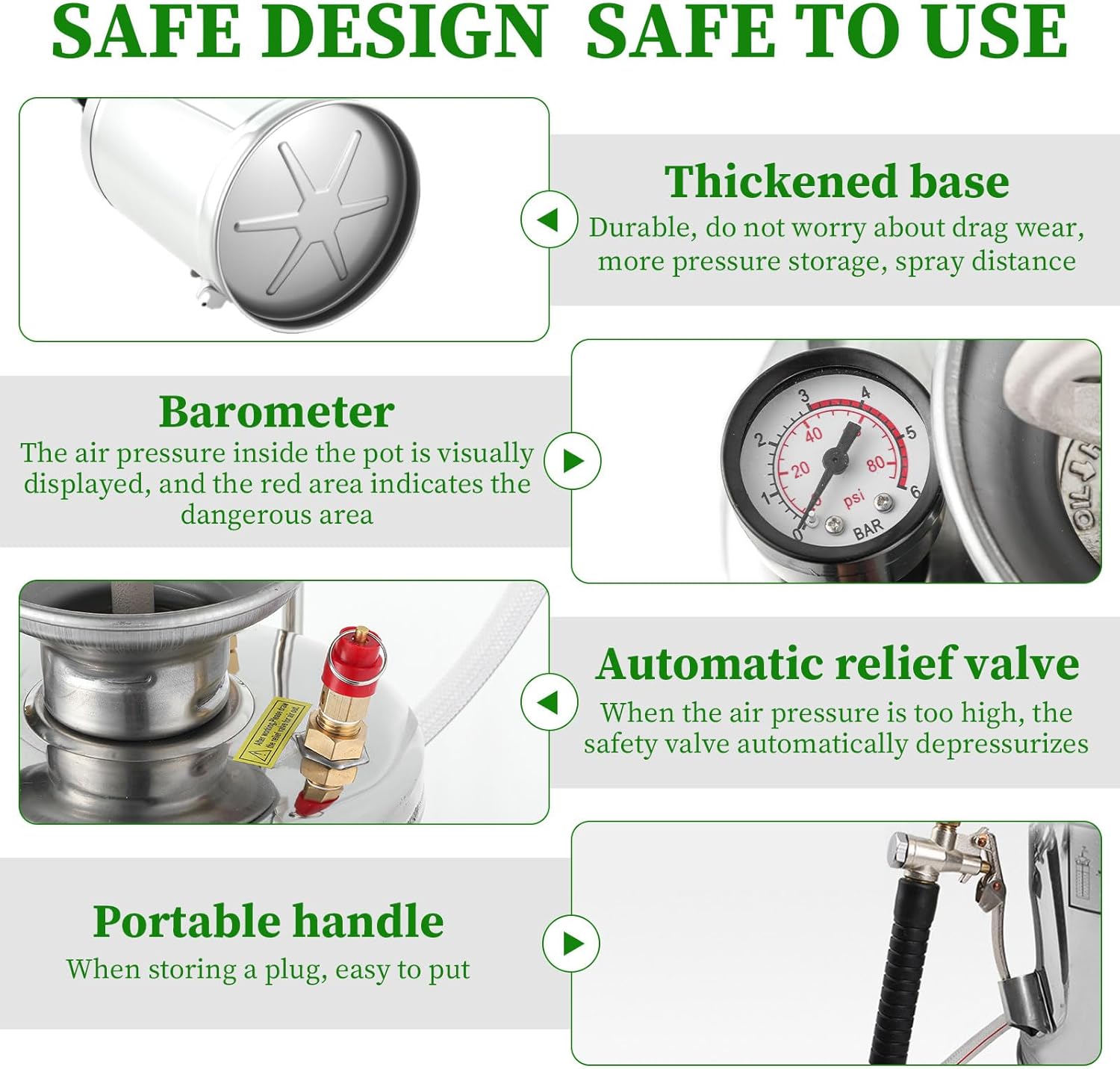 • 【EQUIPPED WITH PRESSURE RELIEF PROTECTION VALVE】-The bleach sprayer can be in the case of too much air will automatically vent pressure relief, can avoid the risk of pot burst due to the pressure is too large, Built-in fast and accurate pressure gauge, suitable for the actual needs of industry, agriculture, commerce and medicine